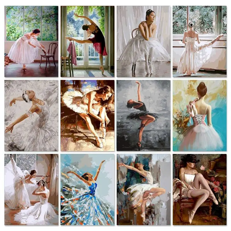 GATYZTORY DIY искусственная балетная девочка наборы рисунок на холсте Ручная роспись картины по номерам фигурки домашний декор