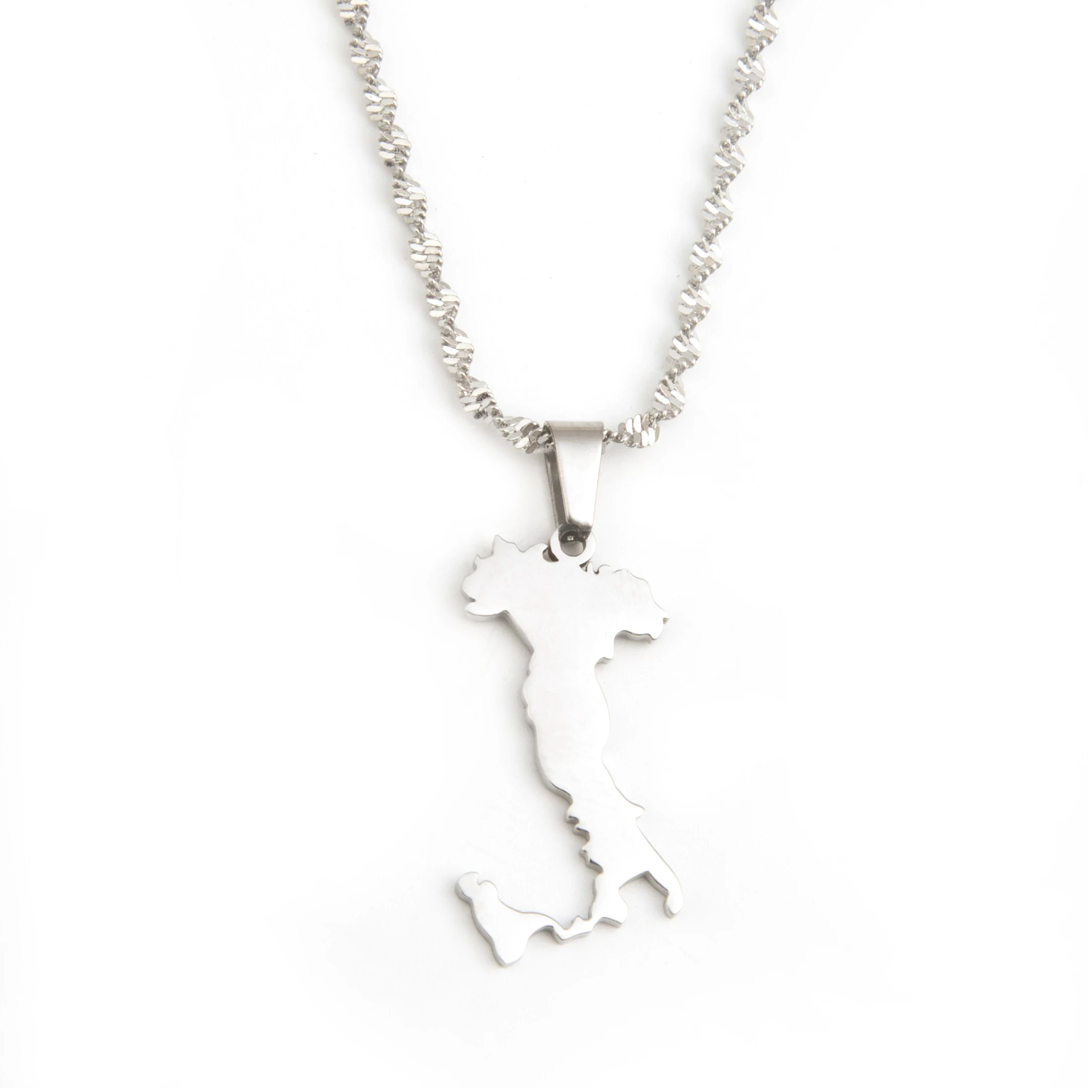 Stainless Steel Silver Color Map of Italy Pendant Necklace Trendy Italy Map Women Charm Jewelry