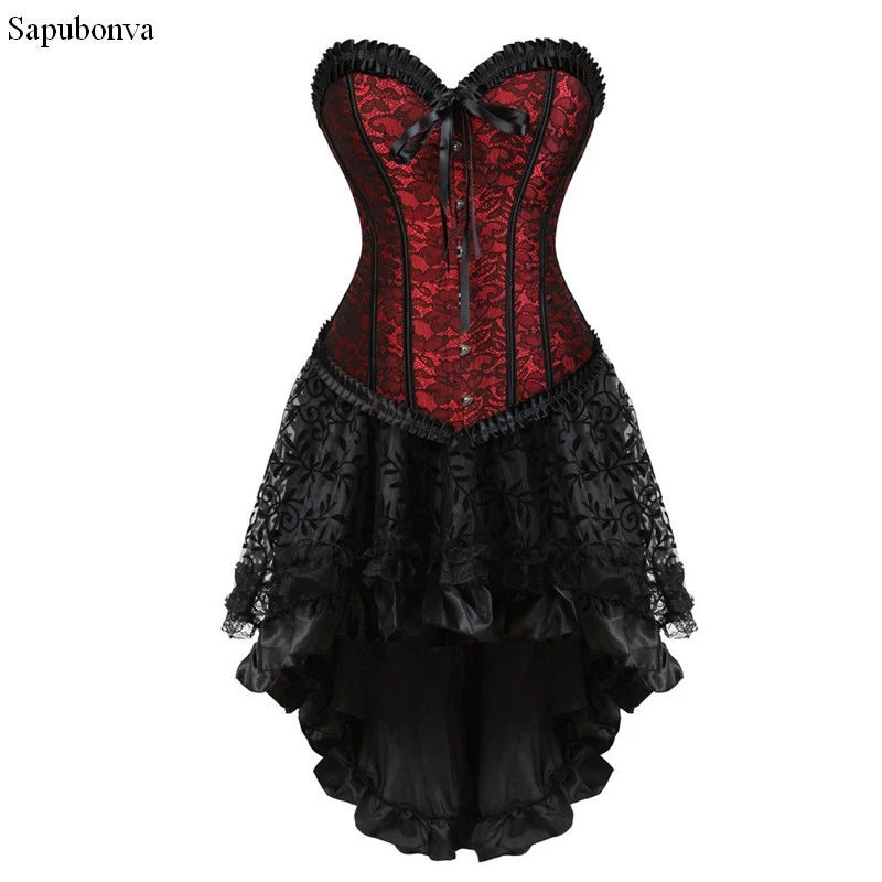 Готическое Цветочное платье-корсет на шнуровке Showgirl, Клубное белье, костюм Burlesque, корсет и юбка, набор экзотических женских черных и красных цветов