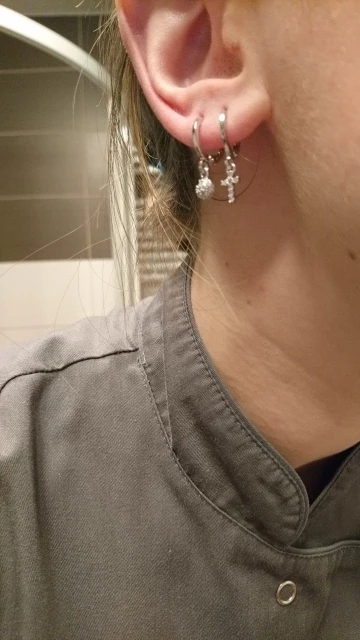 Мне слишком нравятся серьги, они слишком красивые, но будьте осторожны, что одна часть петли, которую я должен был заказать 2 раза, чтобы иметь возможность носить их вместе