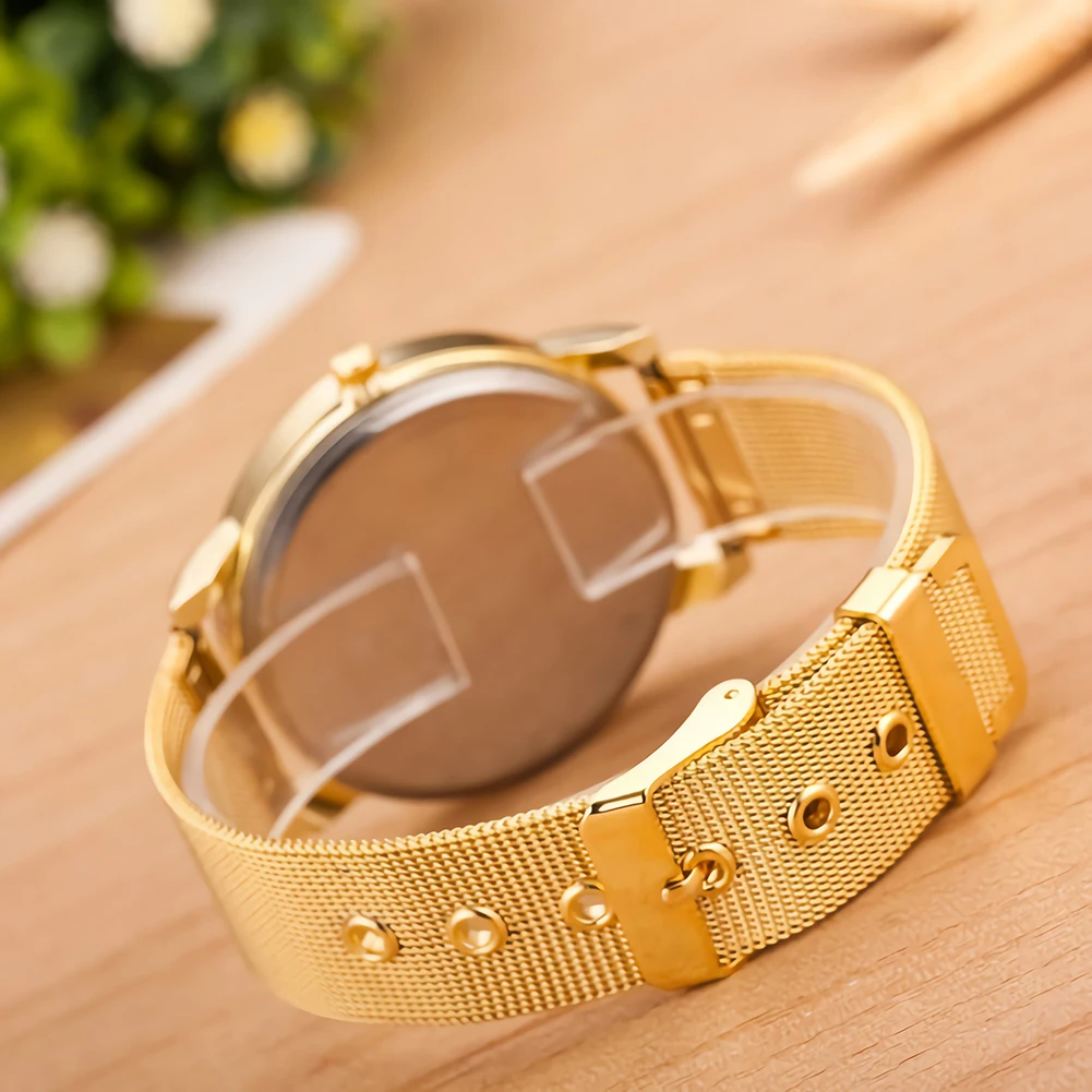 Часы наручные женские кварцевые с круглым циферблатом и сетчатым браслетом