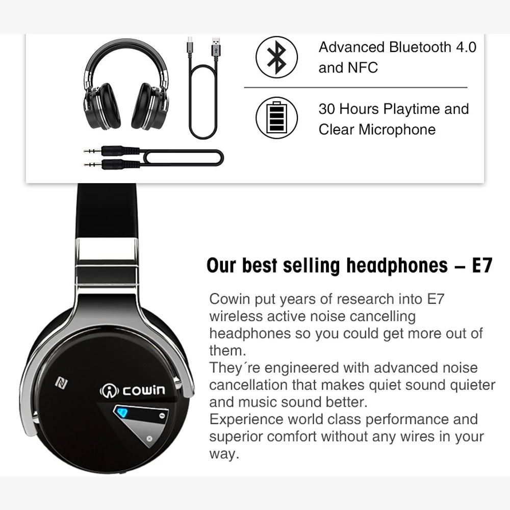 Оригинальные bluetooth-наушники Cowin E7 ANC, Беспроводная bluetooth-гарнитура, наушники для телефонов, наушники с активным шумоподавлением