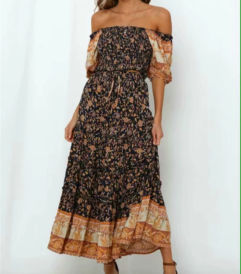 Женское богемное Платье макси с открытыми плечами и цветочным принтом