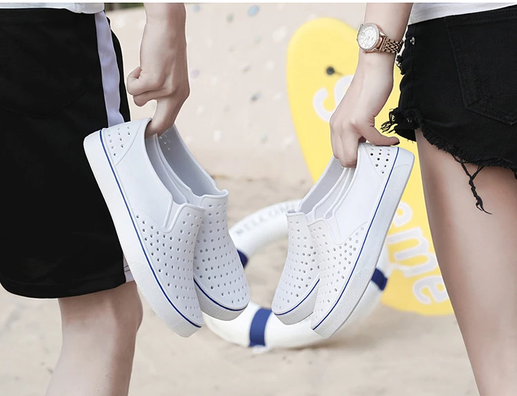 Сандалии унисекс резиновые, босоножки с перфорацией, обувь для пар, плоская подошва, пляжные тапочки, белые, лето