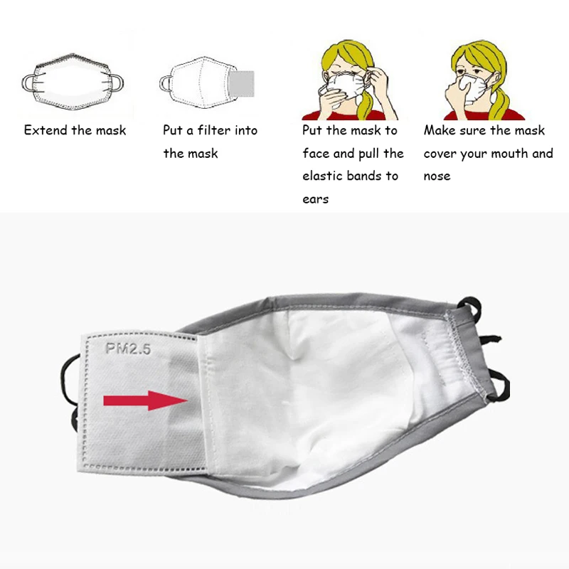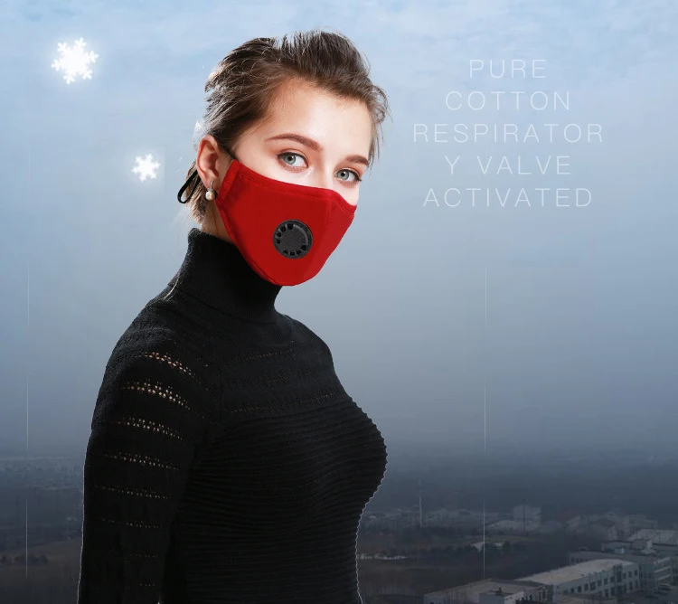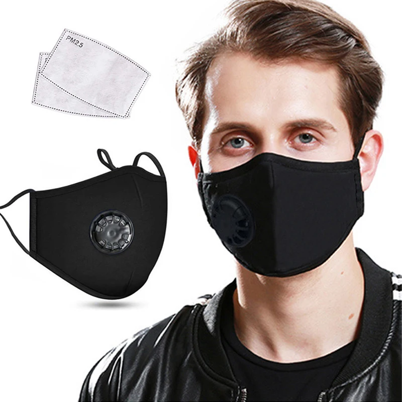 Маска для лица с изображением рта маски хлопок с клапаном фильтра с активированным углем PM2.5 Многоразовые моющиеся респиратор ветрозащитный для мужчин женщин мужчин детей