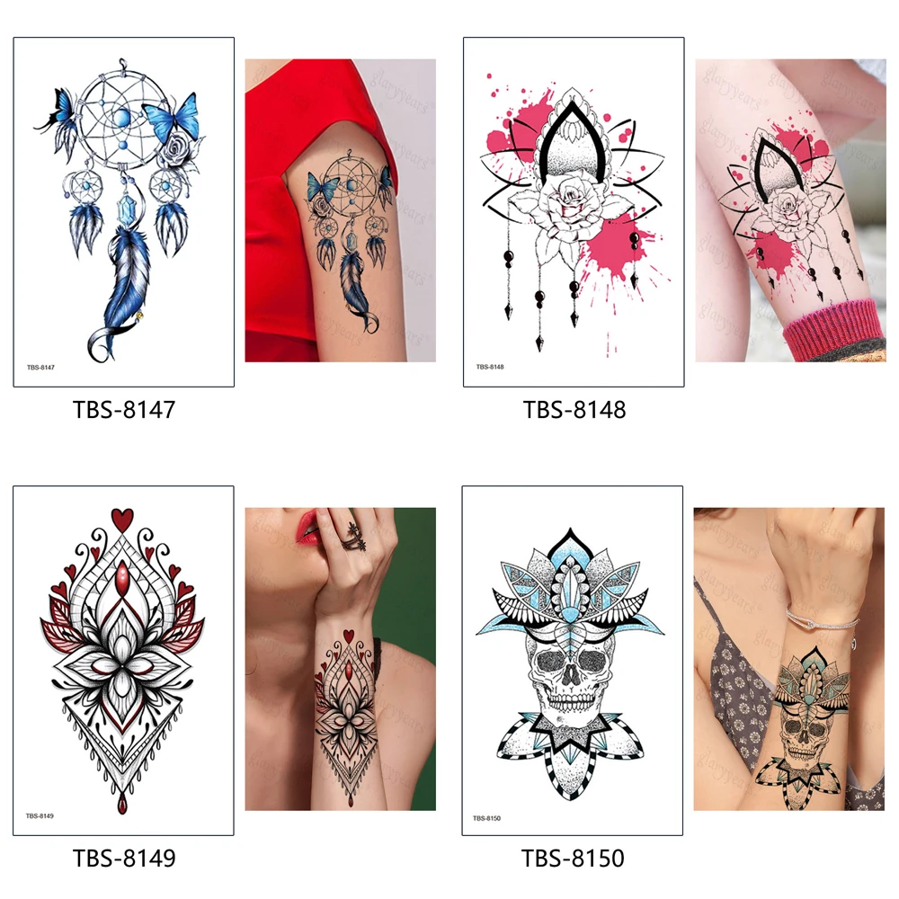 Glaryyears 19*12 см Ловец снов макияж Временная татуировка наклейка искусственный цветок Flash Водонепроницаемый Модный маленький боди-арт для мужчин женщин
