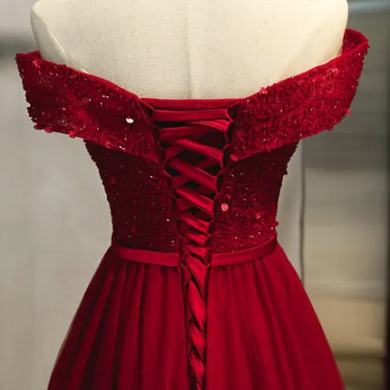 Женское длинное вечернее платье, бордовое, с бисером, с завышенной талией