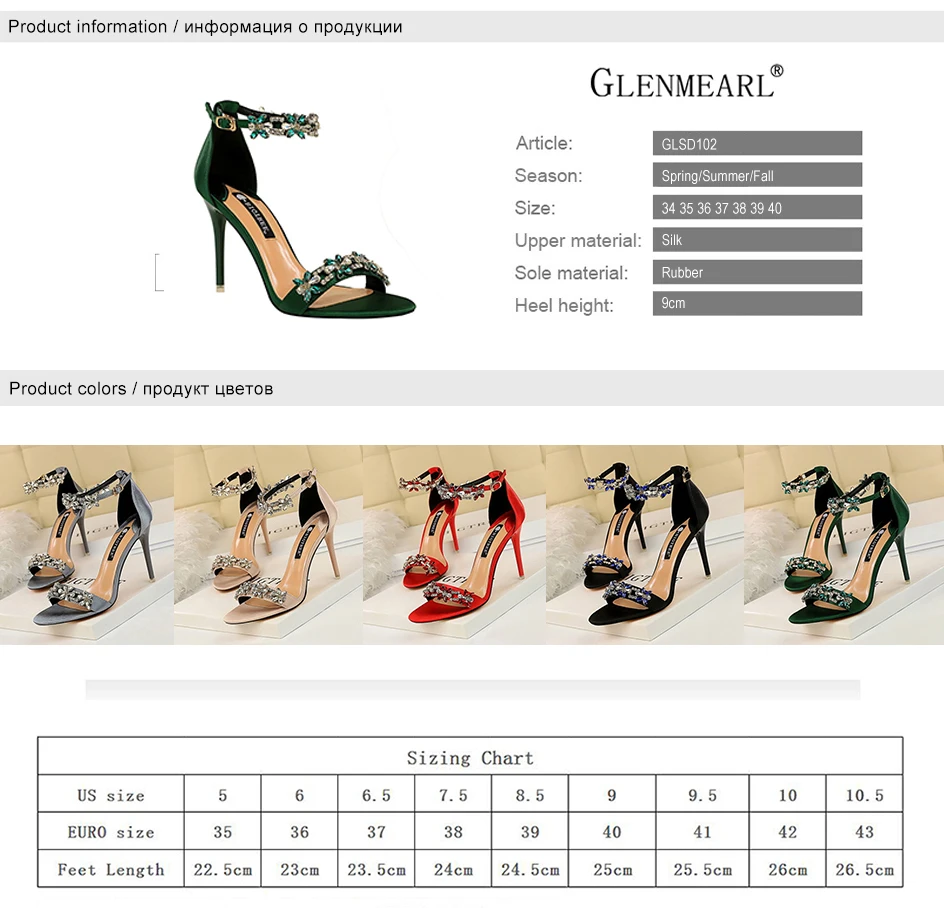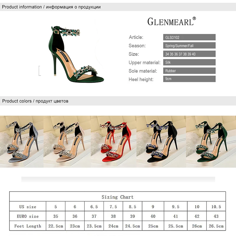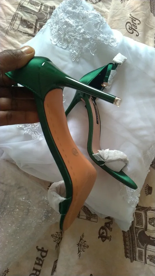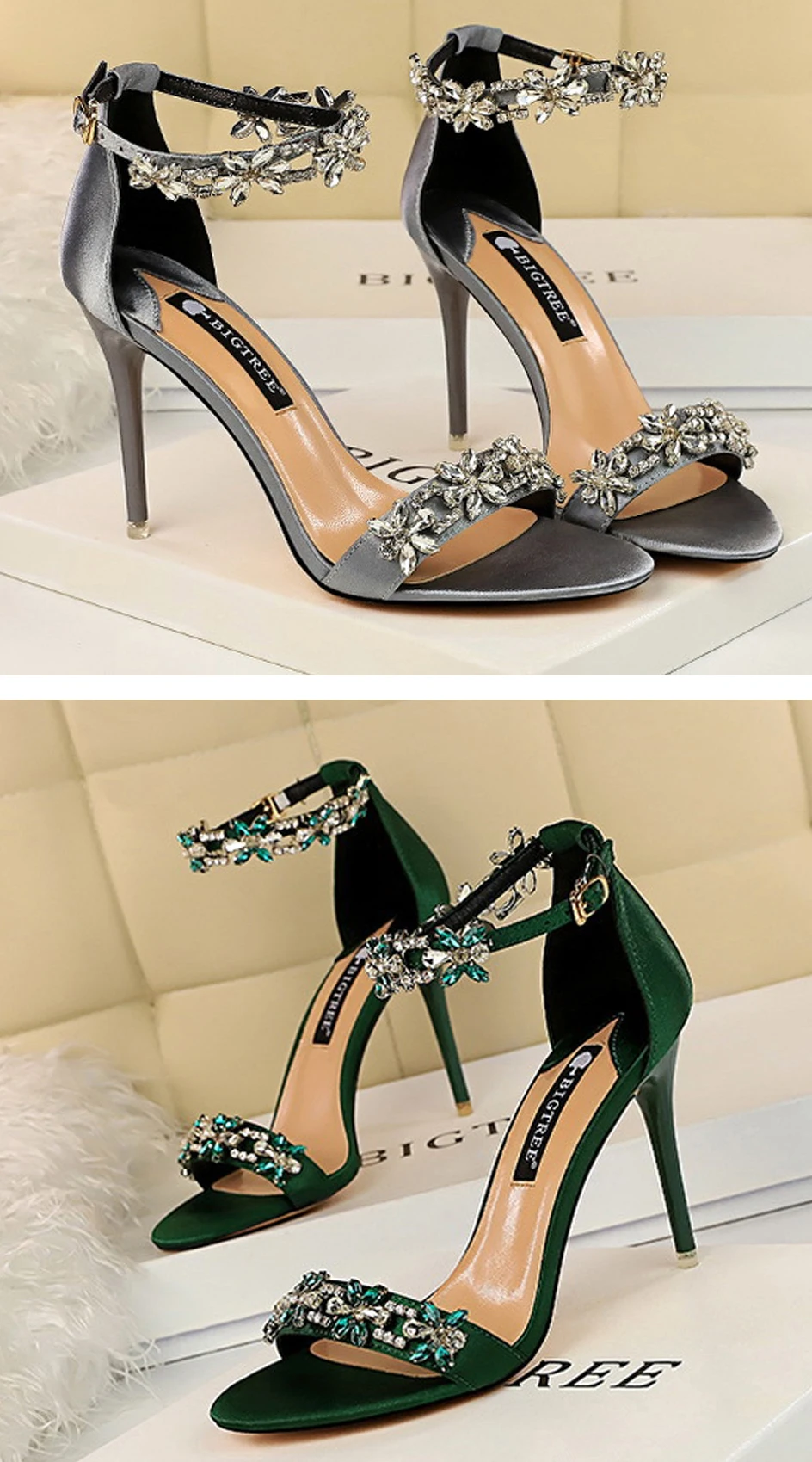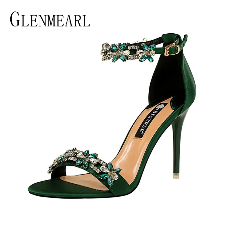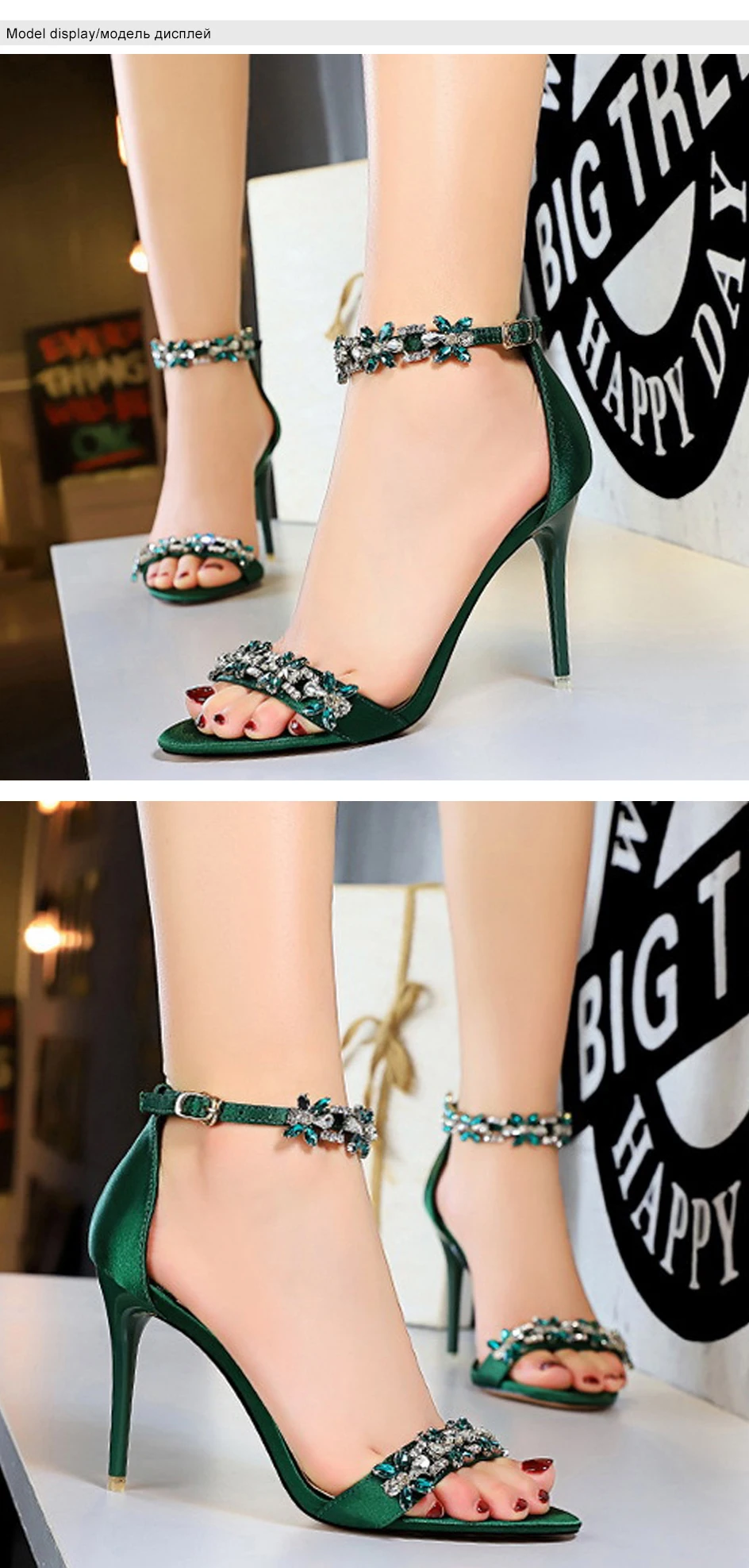 Женские босоножки на высоком каблуке, зеленые пикантные туфли страз...