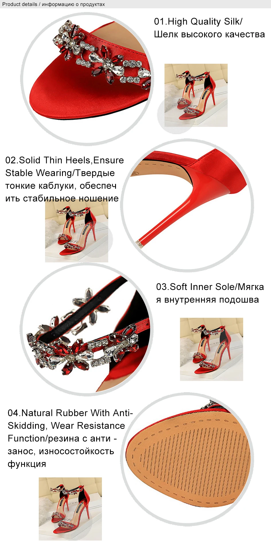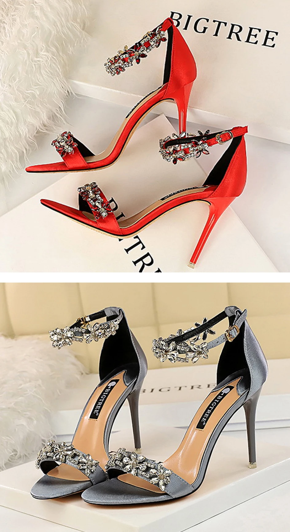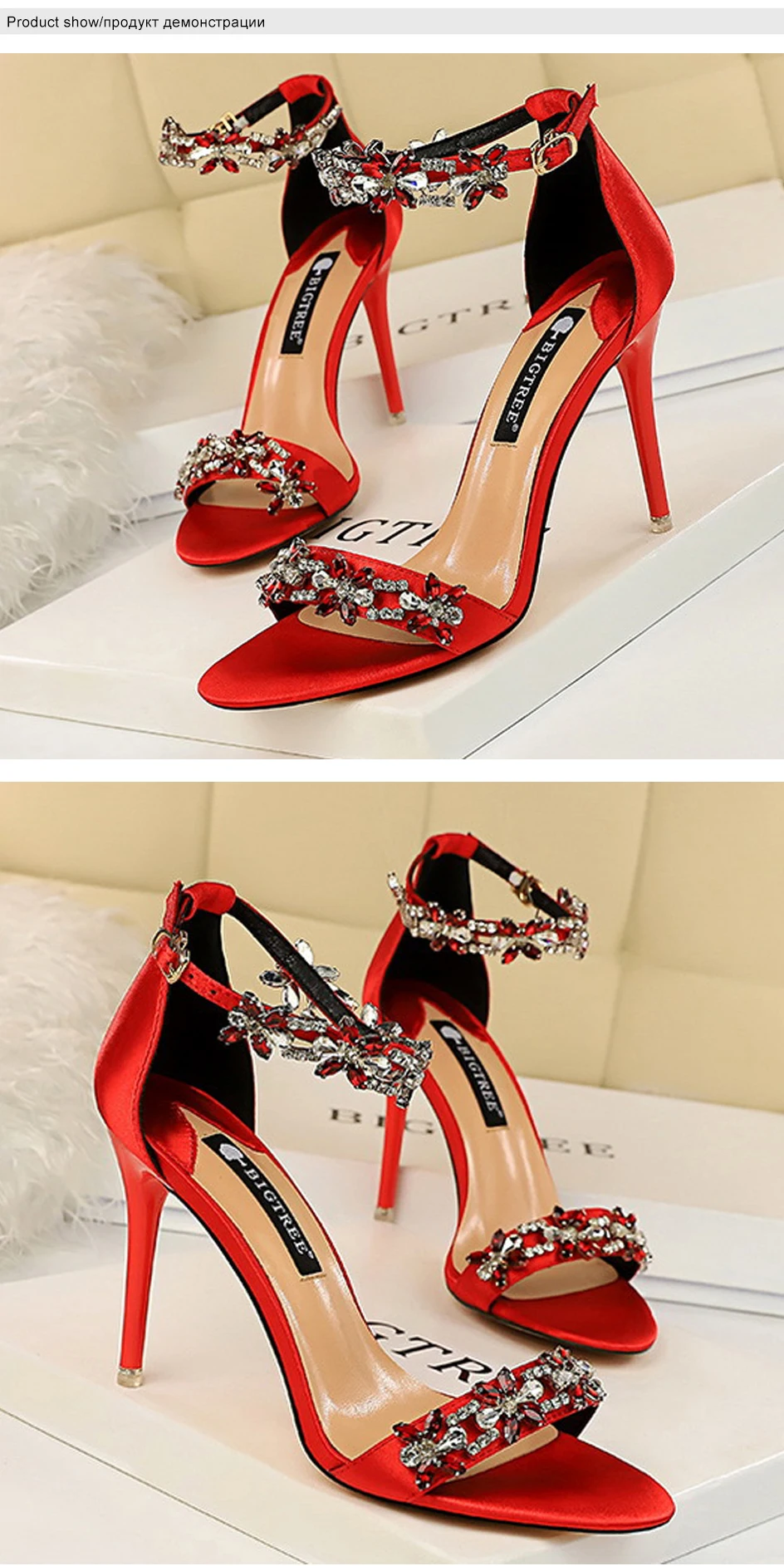Сандалии женские на высоком каблуке, пикантные босоножки на высоком каблуке, со стразами, красные, весна-лето 2020