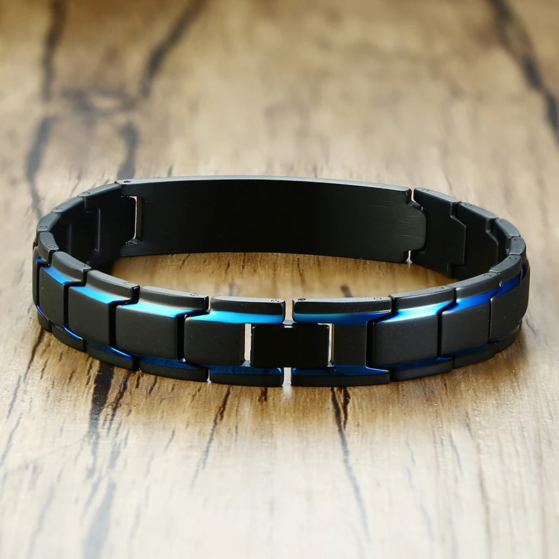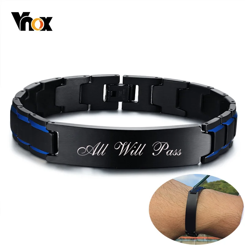 Мужские браслеты Vnox с гравировкой на заказ, черные и синие браслеты из нержавеющей стали, звеньевая цепь 8,46 дюйма