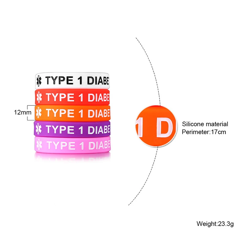 Браслеты для диабета типа 1, 7,48 дюйма, силиконовые медицинские бр...