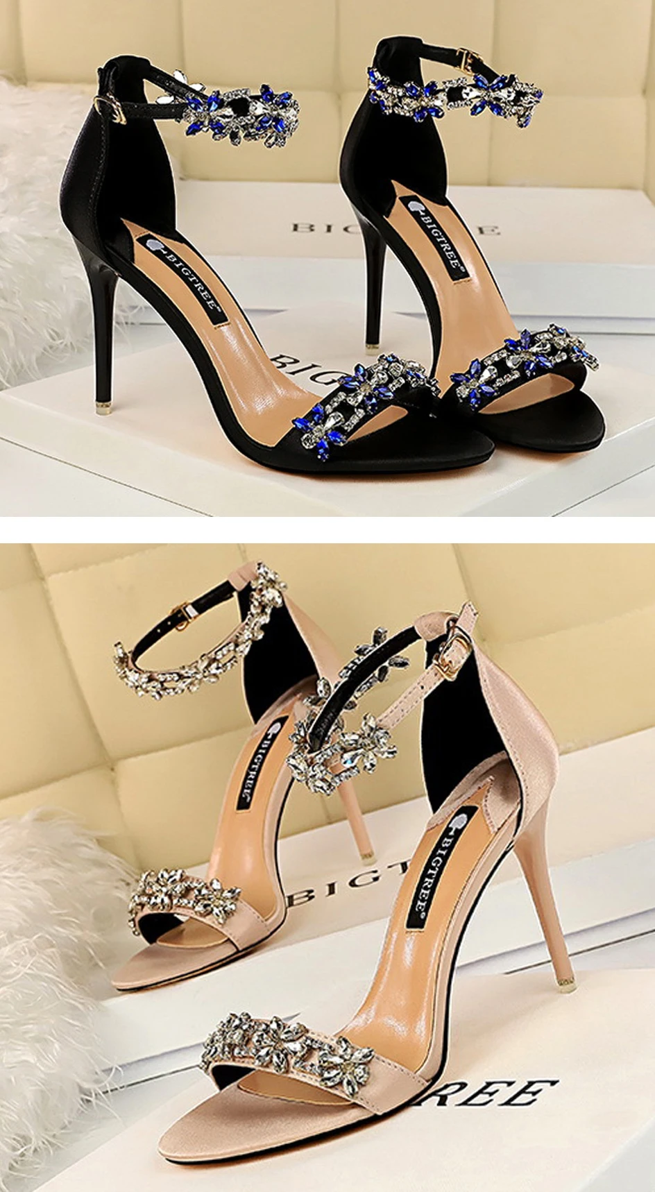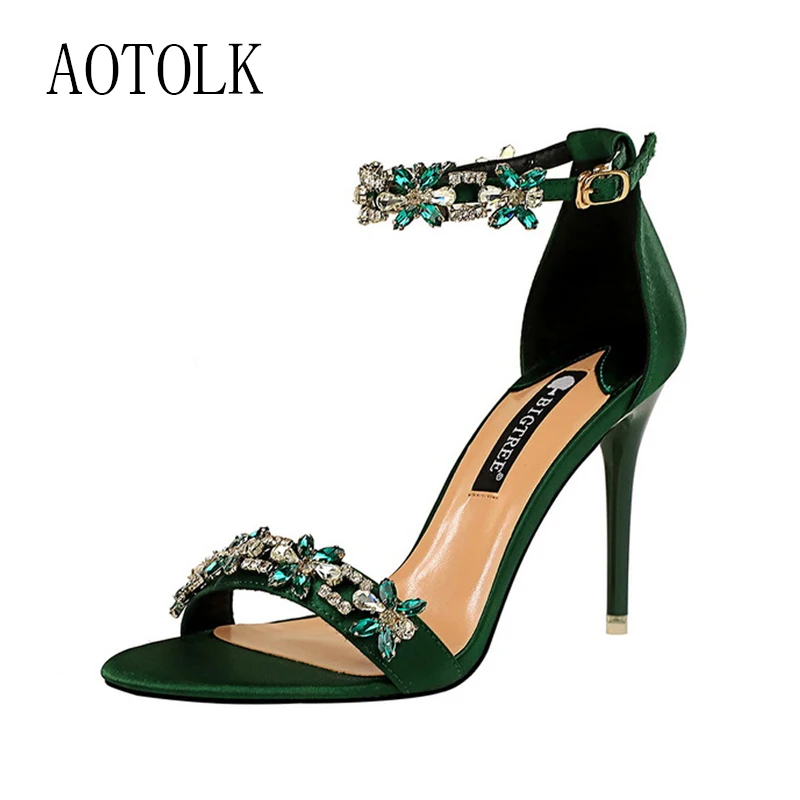 Женские босоножки на высоком каблуке, зеленые пикантные туфли стразы на высоком каблуке, красные весенние праздничные свадебные туфли с пряжкой, Новое поступление 2020