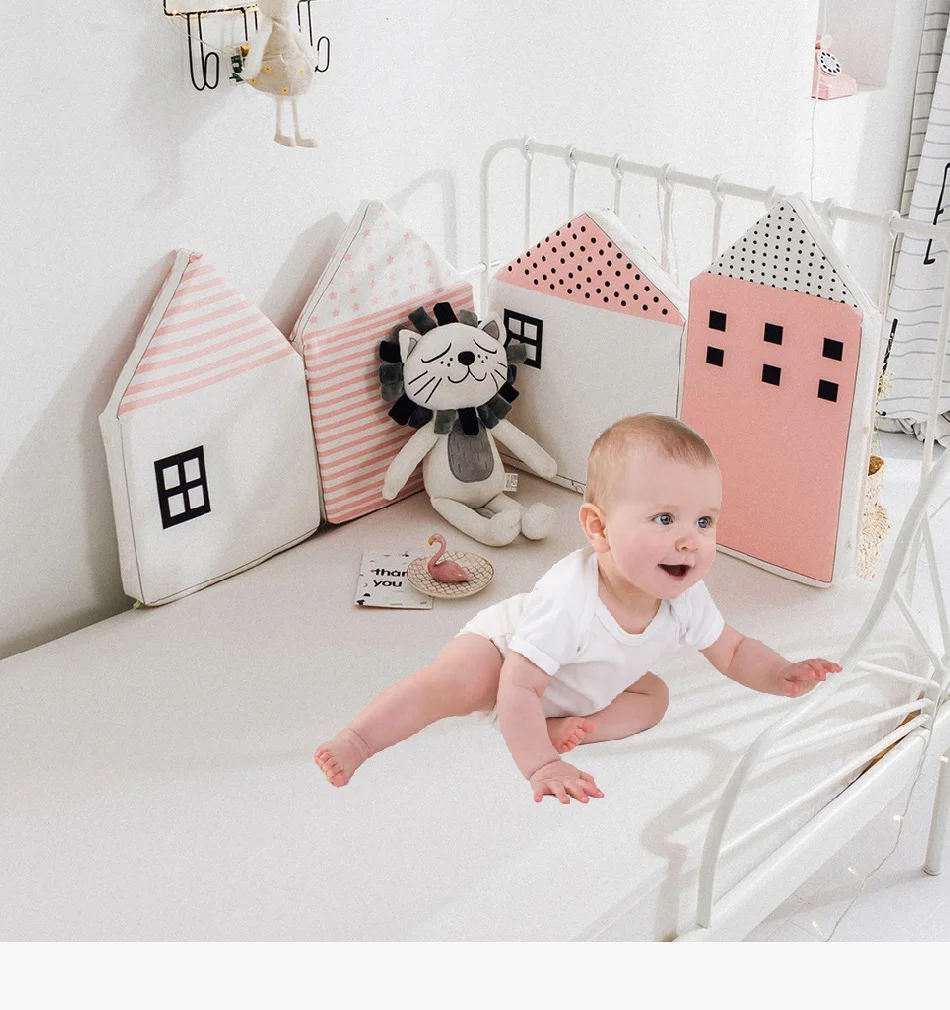 Бампер для детской кровати, 4 шт., с рисунком маленького дома, защи...