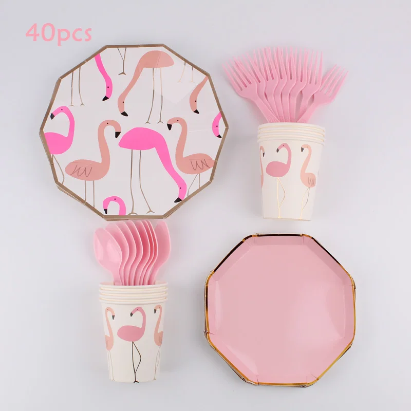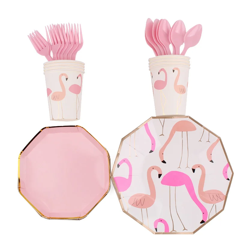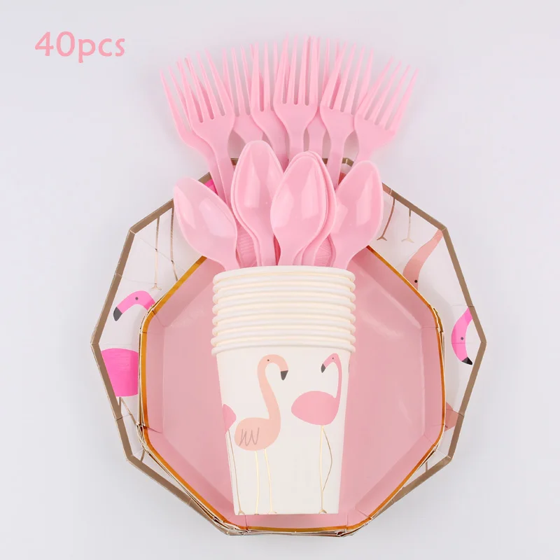 Одноразовая посуда в форме фламинго, нож и вилка, ложка для праздника, дня рождения, вечеринки