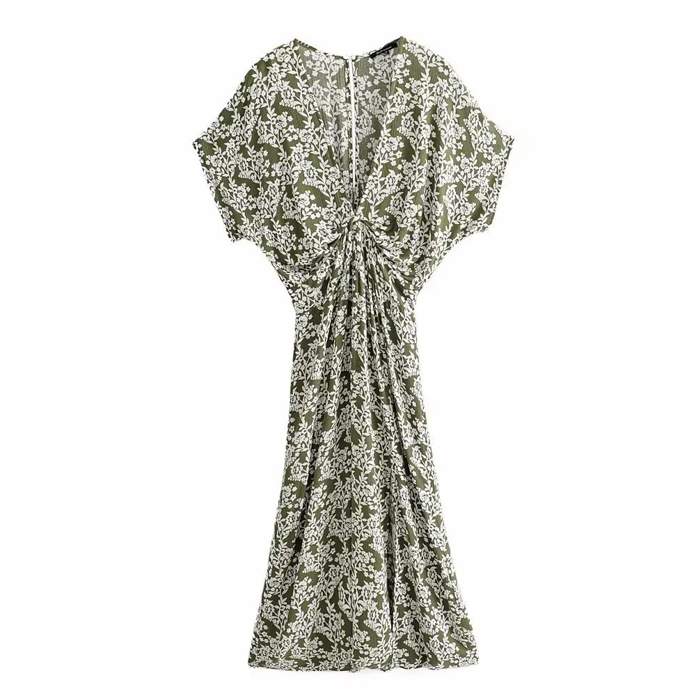 Женское винтажное платье в стиле бохо, зеленое платье макси из иску...
