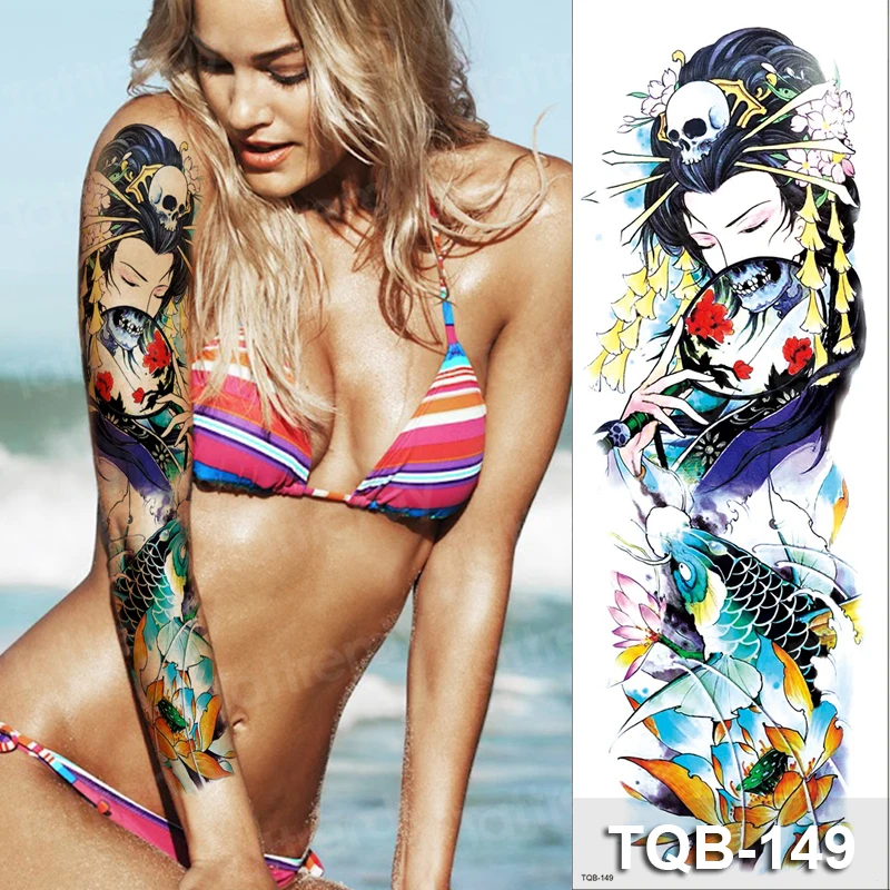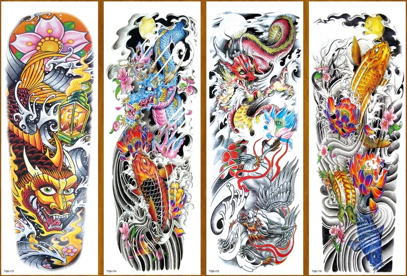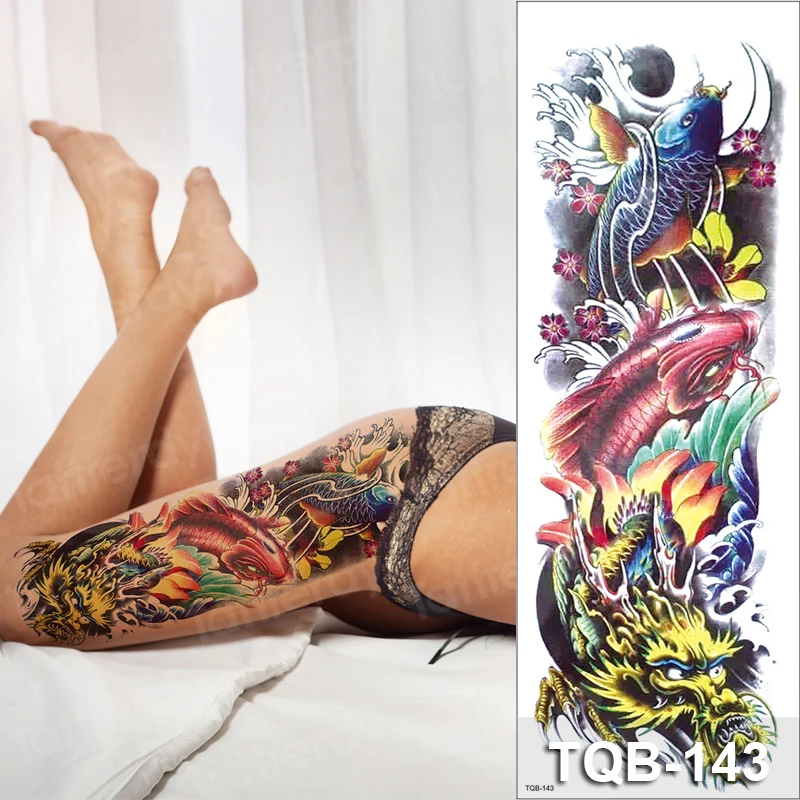 Новые татуировки на большие рукава, водостойкие, временные, лотос, карп, дракон, женщины, девушки, цветок, татуировки, наклейки, мужские, полностью поддельные, черные татуировки