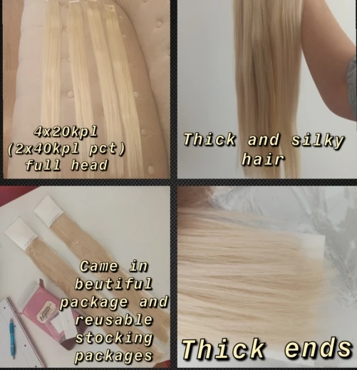 Сами волосы хорошие, очень понравились. Но клейкая лента подвела.... После первого мытья волос, они отвалились... Была неприятно удивлена, ранее с другими продавцами с таким не сталкивалась.