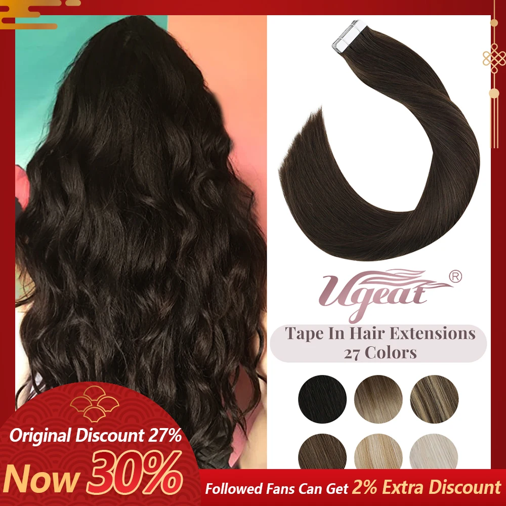 Ugeat лента в человеческих волосах для наращивания настоящие бразильские волосы 20P40P Реми Прямые шелковые Двусторонние ленты натуральные волосы для женщин