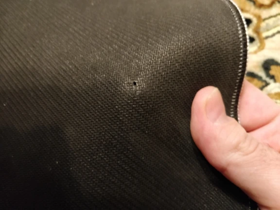 Коврик в порядке, но имеет очень заметные дефекты изготовления в шве, который вышит ткань.