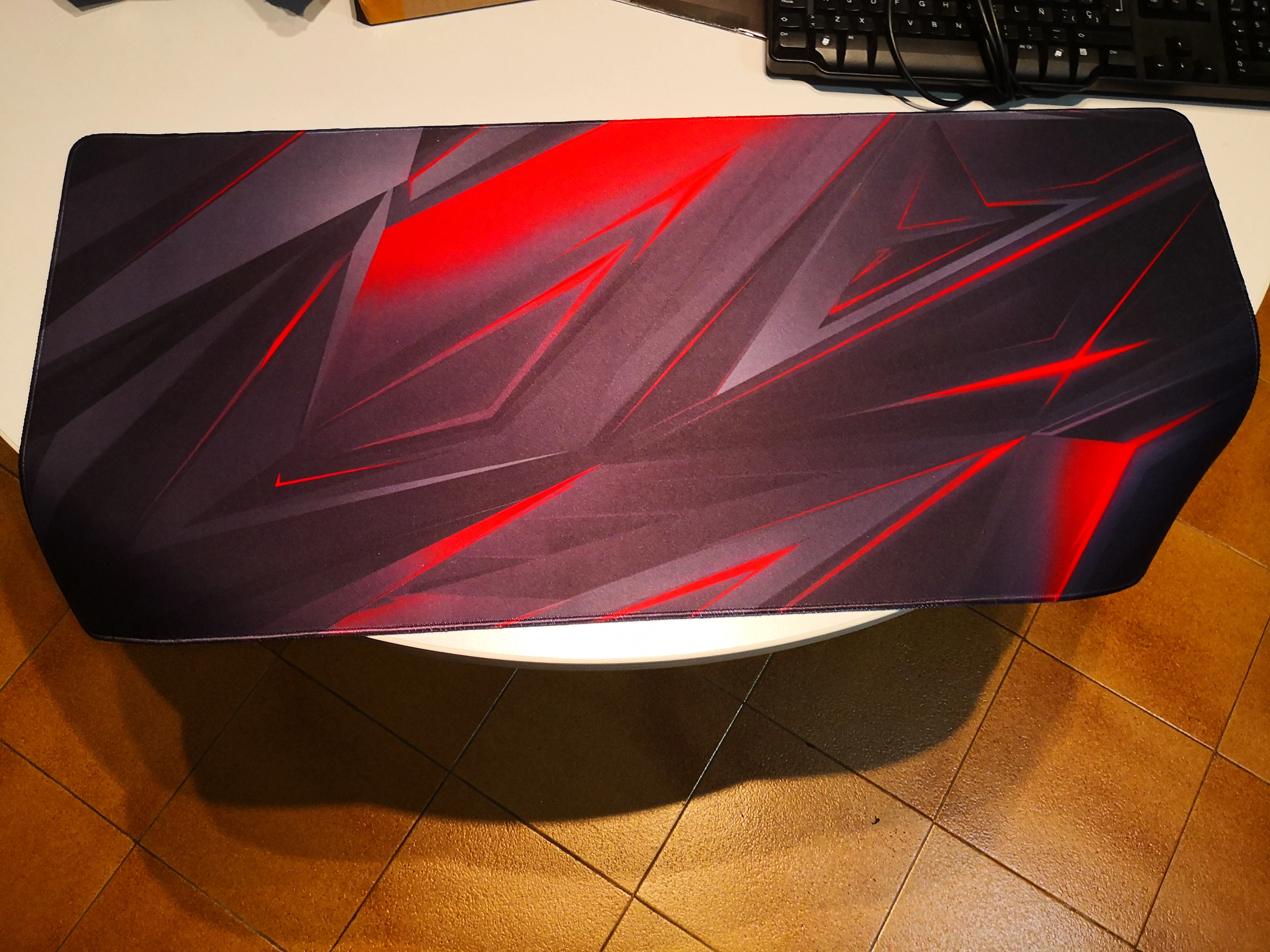 Коврик для мыши был получен довольно быстро, и качество хорошее по цене и размеру. Ширина и толщина соответствуют описанию довольно точно, только длина, кажется, отличается на 10 мм, но может быть только погрешность измерения. Очень хорошо крепится к столу, поверхность достаточно гладкая и действительно хорошо сшита. Тем не менее, немного пахнет резиной, надеюсь, что она рассеивается. И цвет немного тусклый, если смотреть глазами по сравнению с предоставленным фото и смотреть на него через камеру, но Принт по-прежнему очень четкий!
