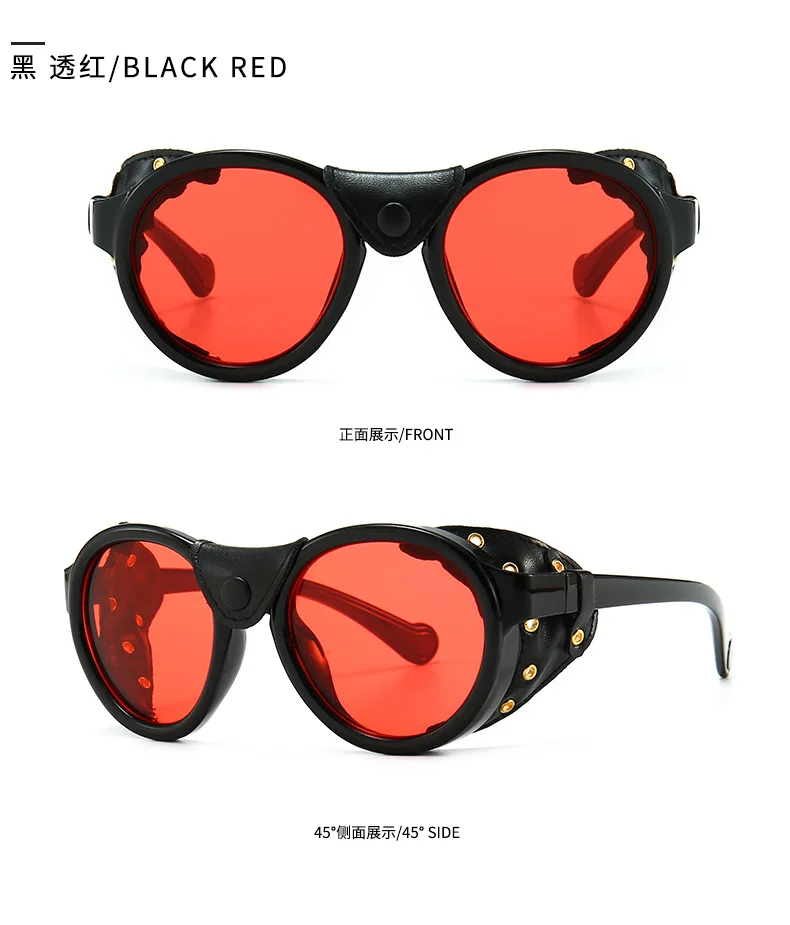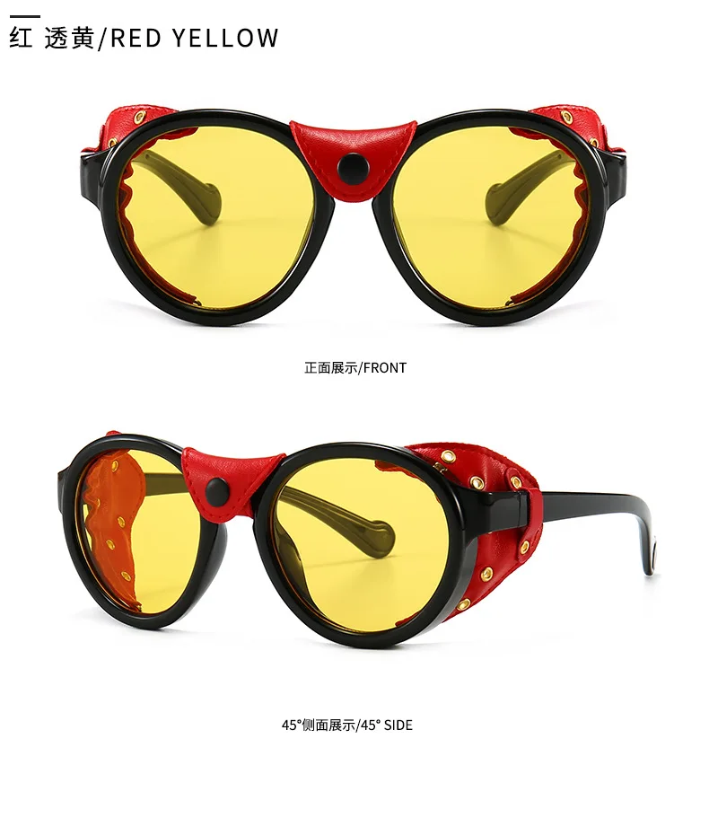 Солнцезащитные очки унисекс, круглые, кожаные, в стиле стимпанк, ме...