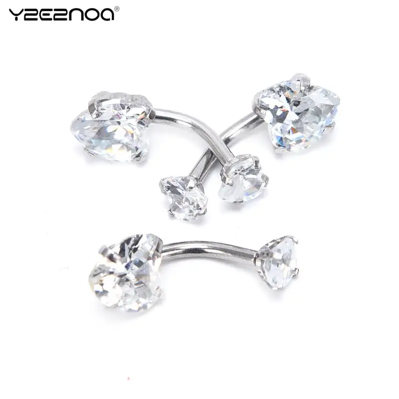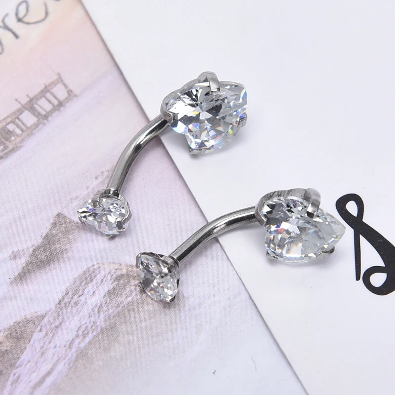 Кольцо-штанга из хирургической стали для пирсинга пупка, пикантное украшение для пупка с цирконием в форме сердца, 1 шт.