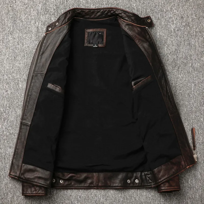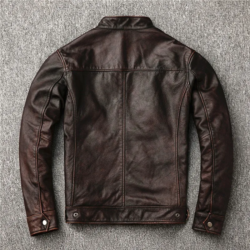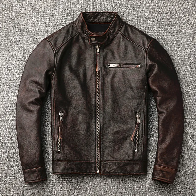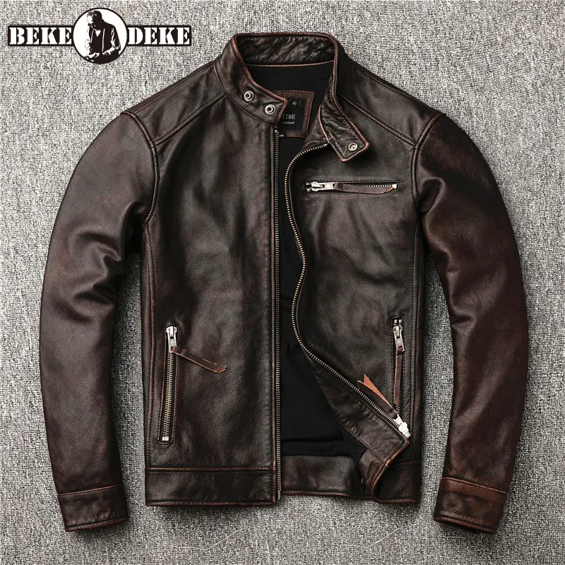 Мужская Байкерская кожаная куртка, Классическая винтажная байкерская куртка из натуральной воловьей кожи в моторном стиле, большой размер 5XL, бесплатная доставка
