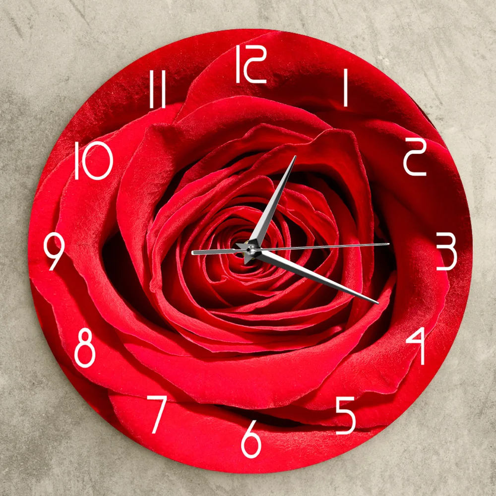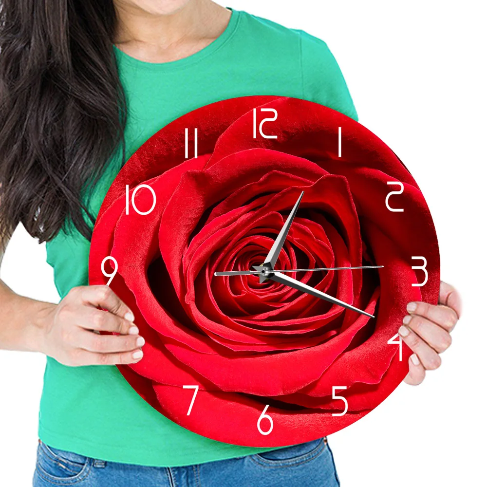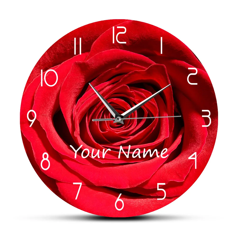 Настенные часы с красными розами и принтом под заказ, Современный Цветочный декор для спальни, индивидуальный подарок для нее, настенные часы с ботаническим рисунком