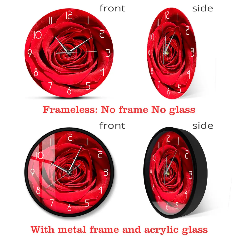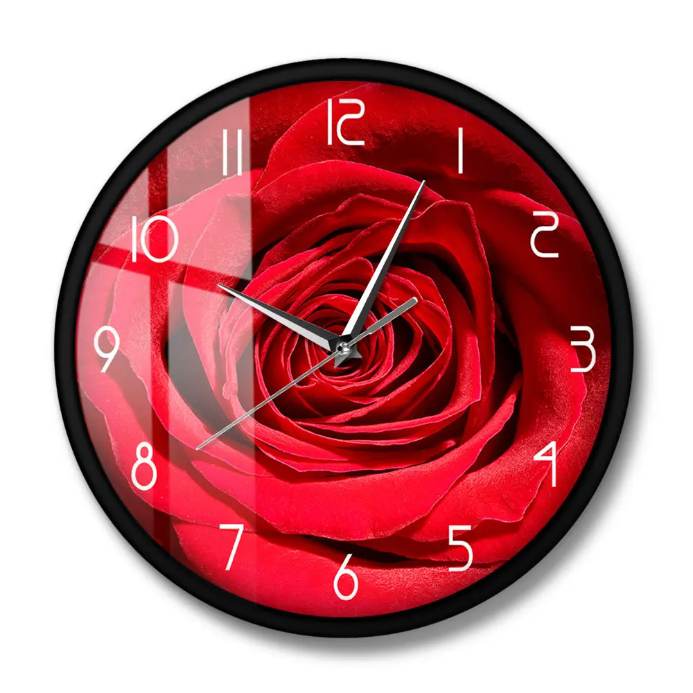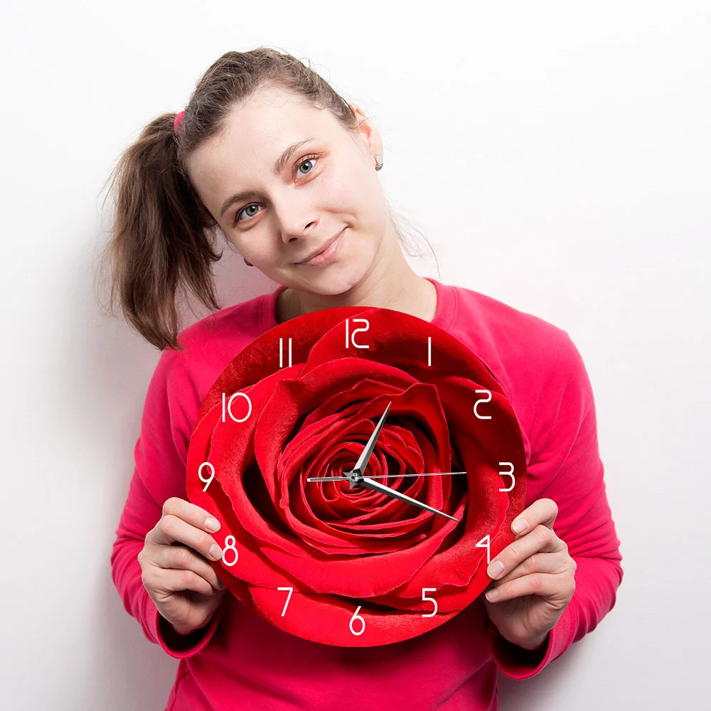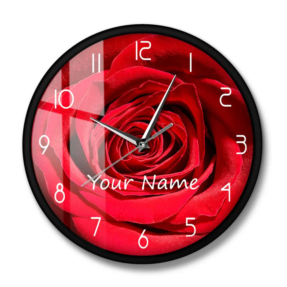Настенные часы с красными розами и принтом под заказ, Современный Цветочный декор для спальни, индивидуальный подарок для нее, настенные часы с ботаническим рисунком