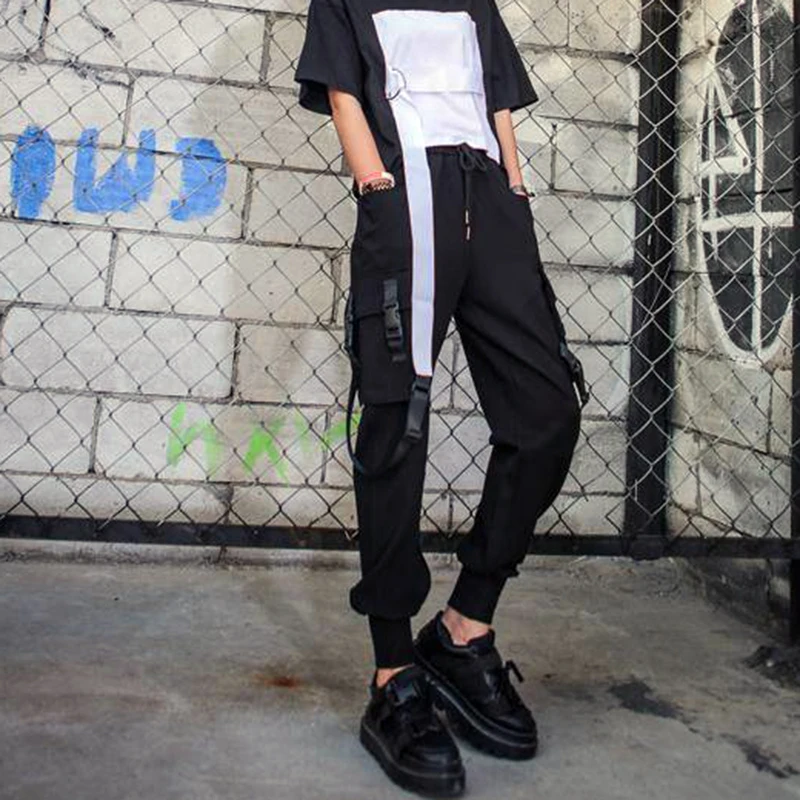 Женские брюки-карго с высокой талией, брюки в стиле панк, брюки для бега, уличная одежда в стиле хип-хоп, черные брюки хиппи, женские штаны-шаровары Harajuku 2020