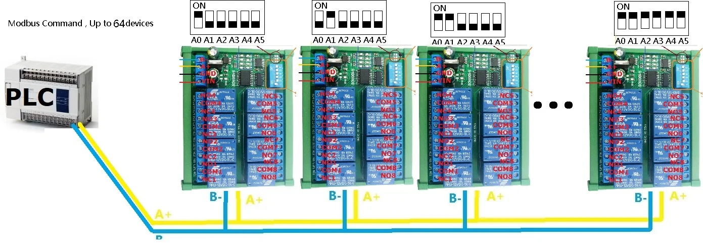 Релейный модуль Modbus RTU UART, 12 В постоянного тока, 8 каналов RS485, пульт дистанционного управления DIN35 C45, релейный блок для PLC PTZ-камеры, монитор безопасности