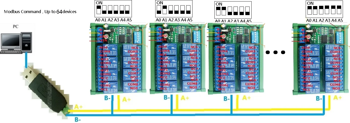 Название продукта: DC 12 В 8 каналов RS485 релейный модуль Modbus RTU UART пульт дистанционного управления Переключатель DIN35 C45 рельсовая коробка для PLC PTZ камеры монитор безопасности
