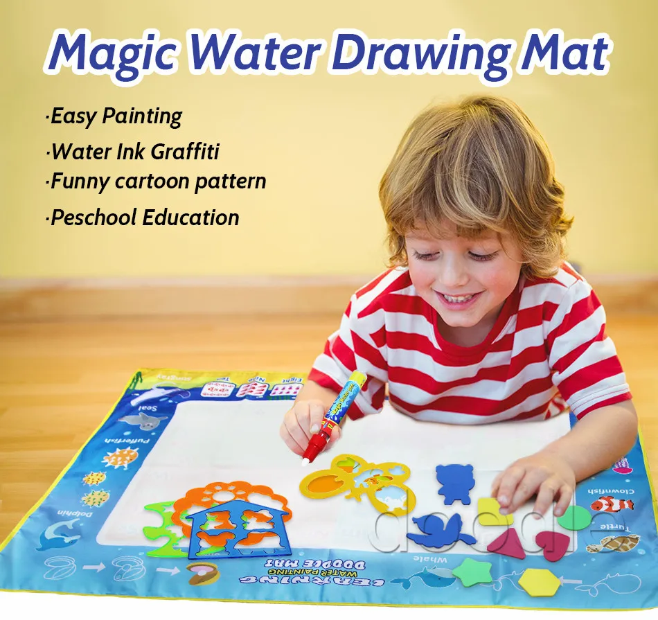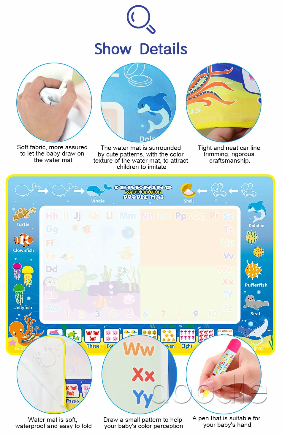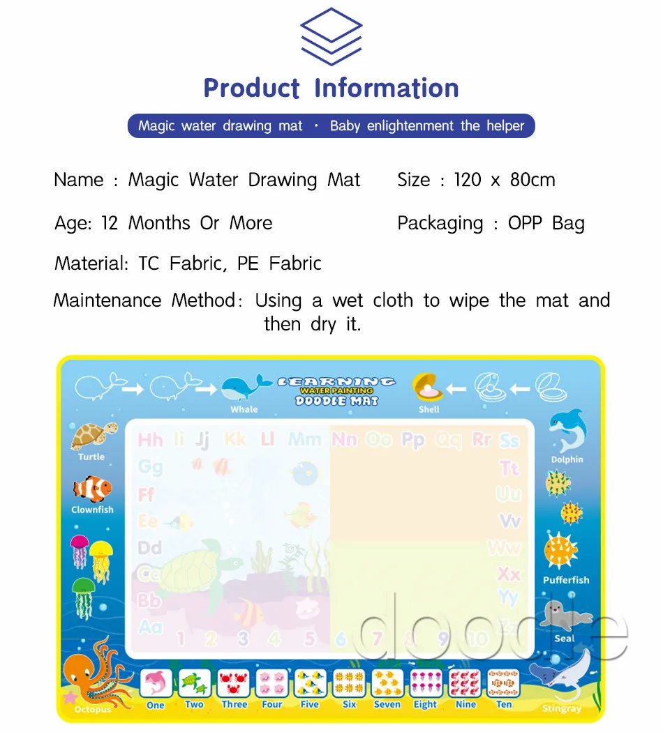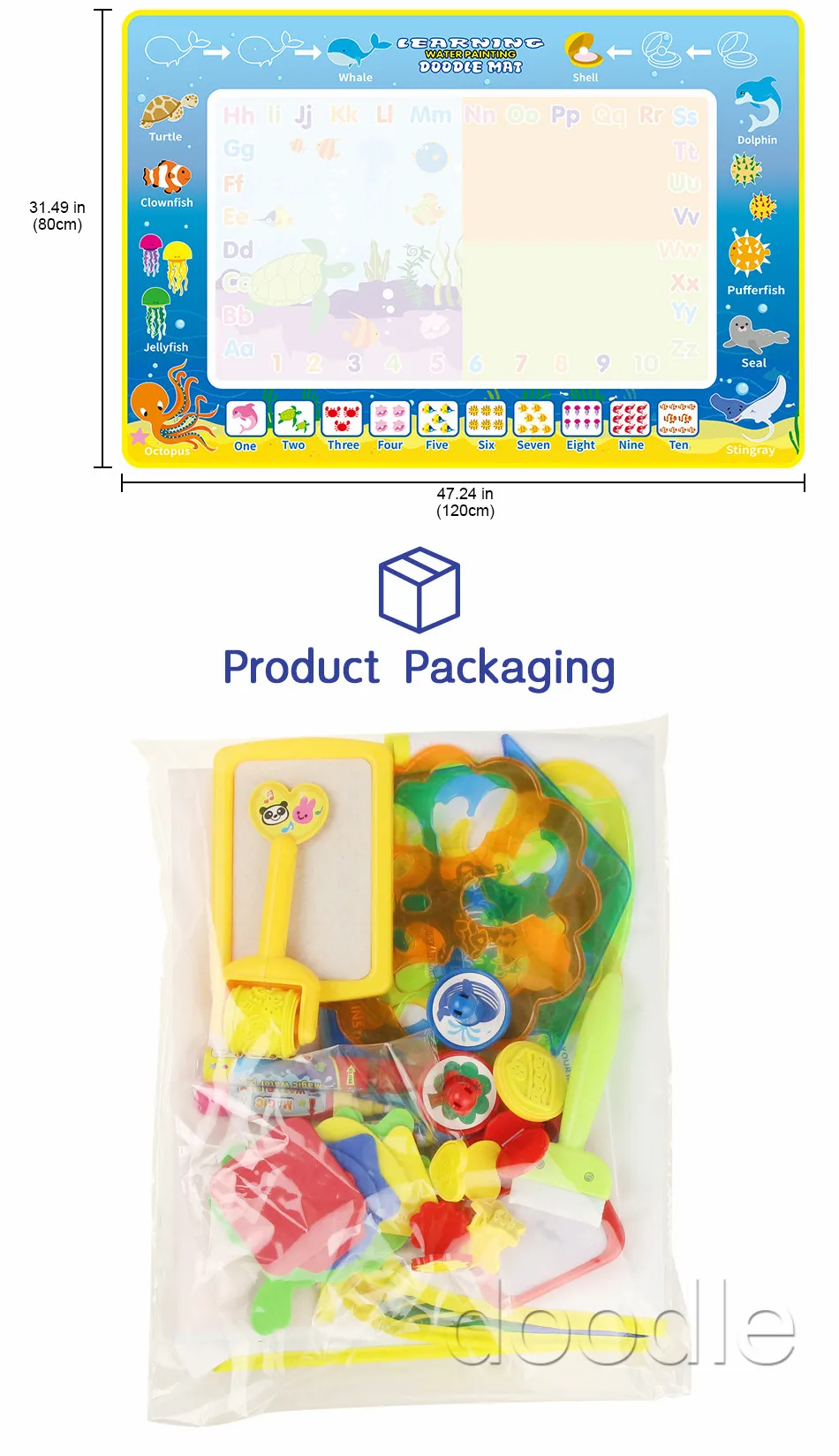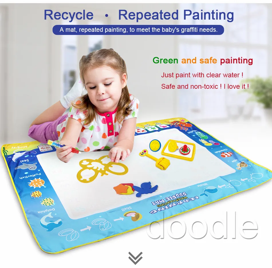 Коврик для рисования по океану, 120x80 см, мягкий коврик для рисования и набор из 3 ручек и штампов, инструменты для рисования, доска, Обучающие игрушки, подарок для детей