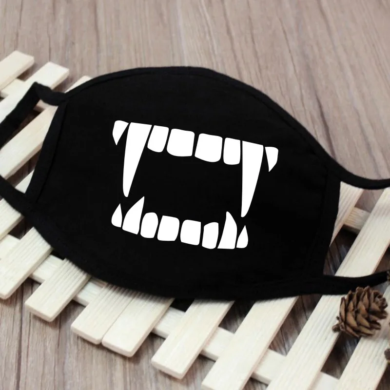 Пылезащитная хлопковая маска для мужчин и женщин, маска с забавным рисунком зубов и смешным выражением для вечеринки, Осень-зима, Черная