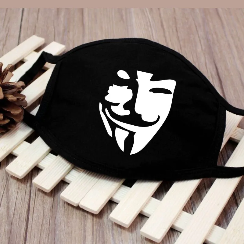 Маска для лица черная с рисунком из мультфильмов, забавный рисунок ...