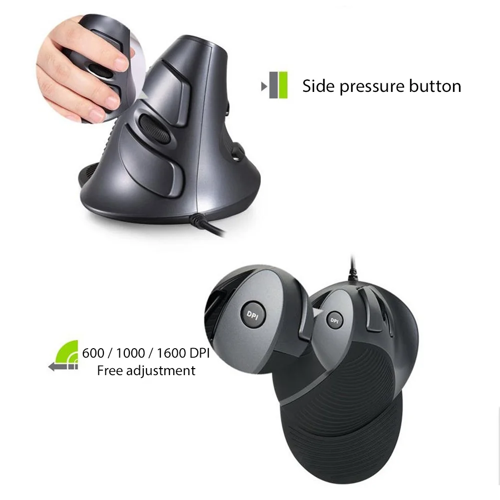 Эргономичная Вертикальная мышь, 6 кнопок, 60010001600 DPI, ПК, оптическая противоскользящая мышь для офиса и дома, мышь, новая модель 2019 года