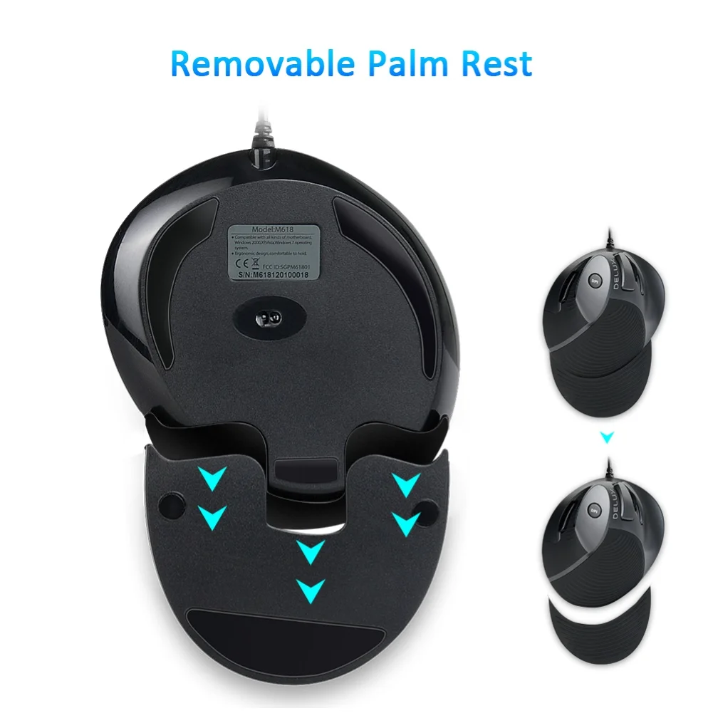 Мышь Вертикальная оптическая Delux M618, 6 кнопок, 1600 DPI, с рези...