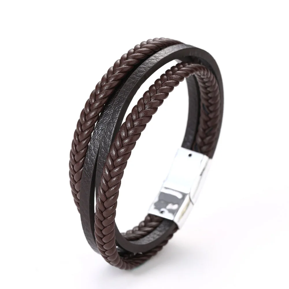 Модные браслеты из искусственной кожи 1 шт., мужские многослойная плетеная веревка из нержавеющей стали, браслеты для мужчин и женщин, ювелирные изделия
