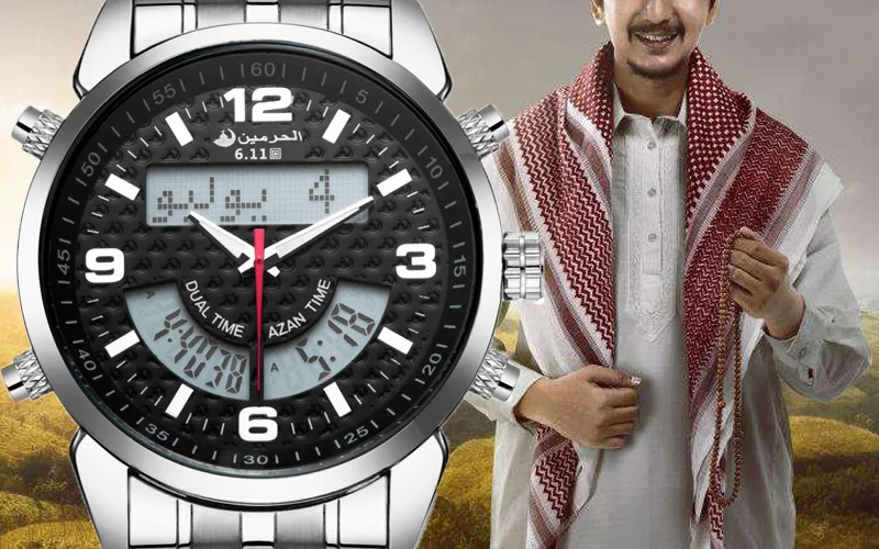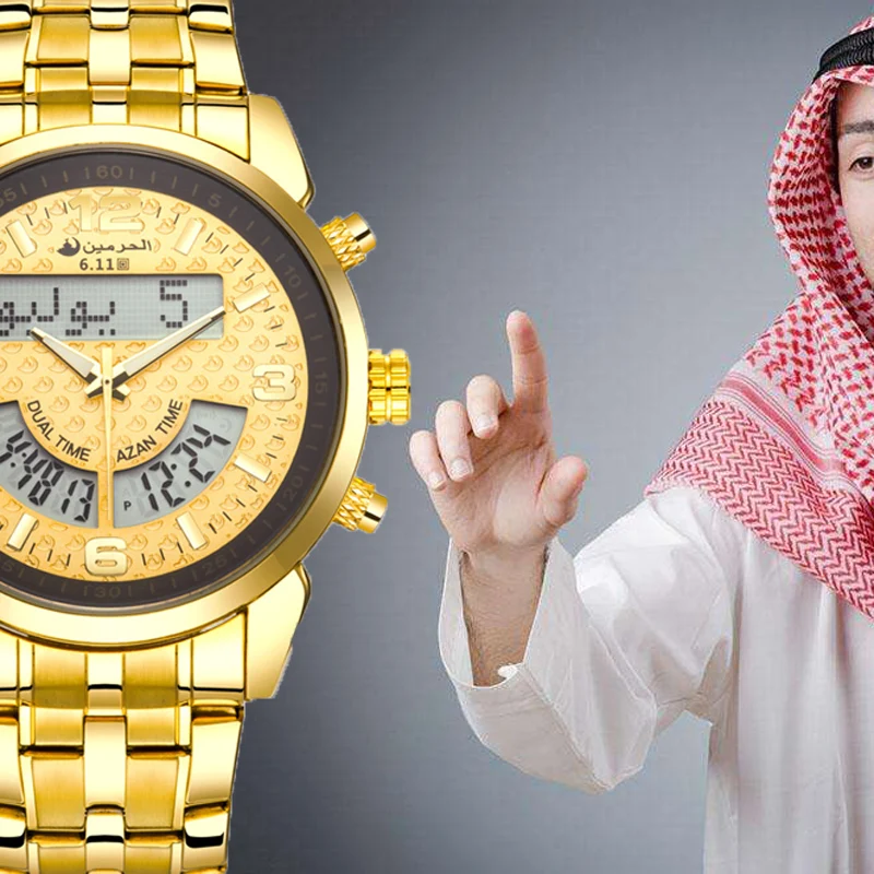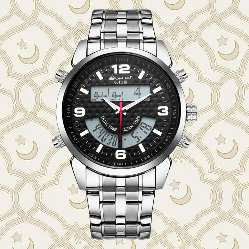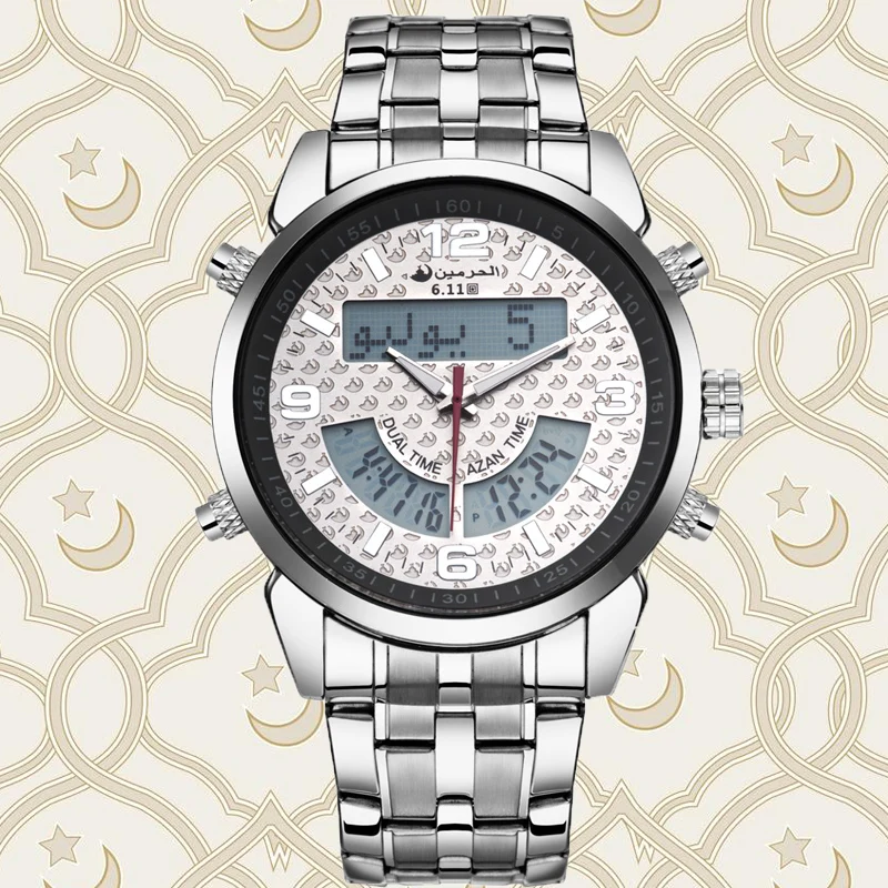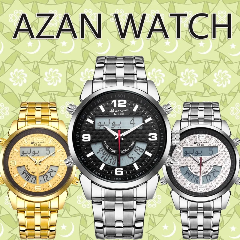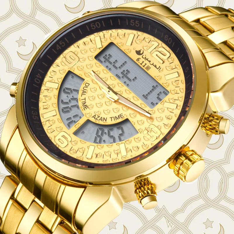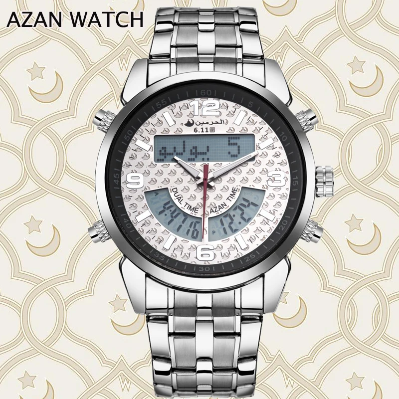 6,11 Azan часы мужские полностью стальные многочасовые светодиодные цифровые часы мужские водонепроницаемые часы модный двойной дисплей времени