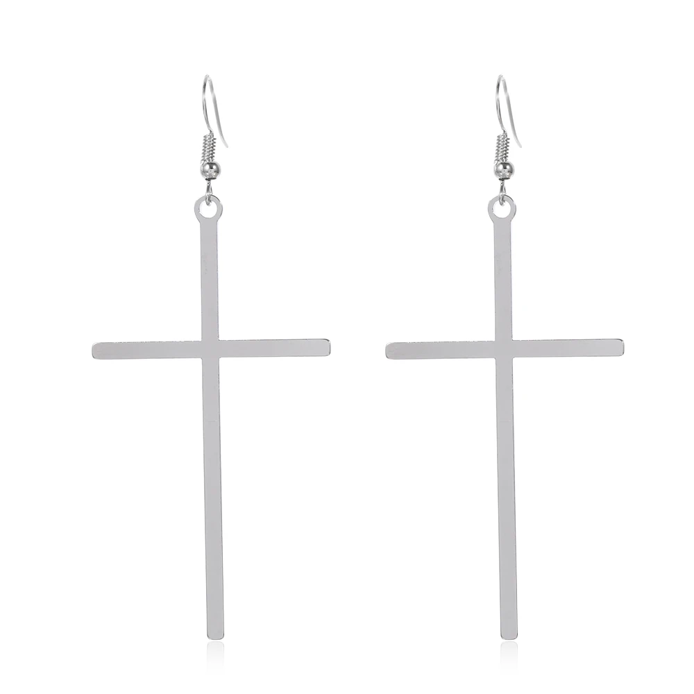 Женские длинные серьги в этническом стиле, с большим крестом, висячие серьги золотого цвета, бижутерия, украшения, Этнические женские, панк, крест, серьги
