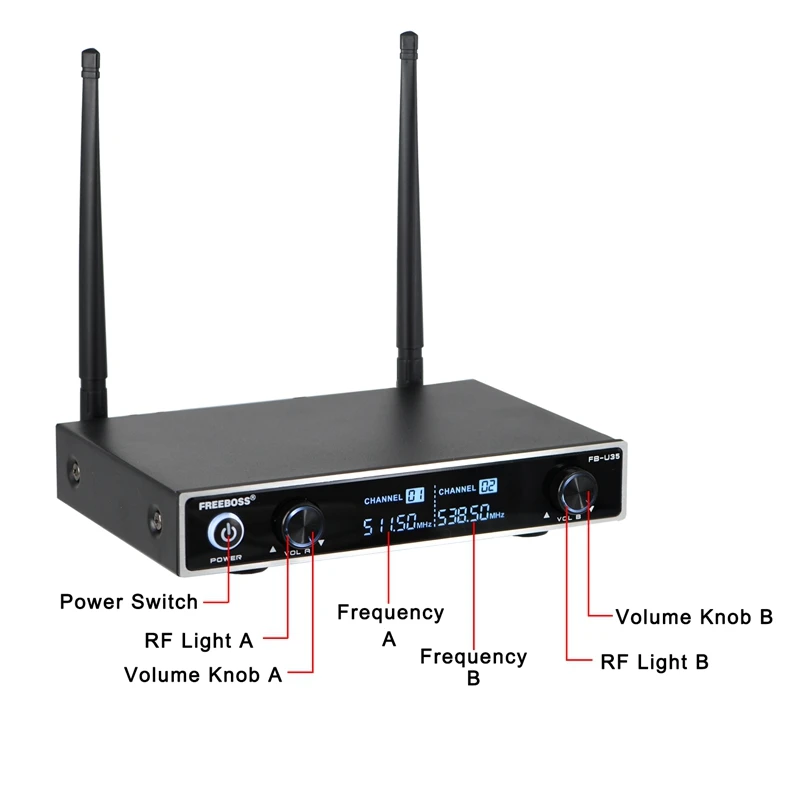 FB-U35H двухполосная UHF Беспроводная микрофонная система с фиксированной частотой с ручным + отворотом + гарнитура для караоке