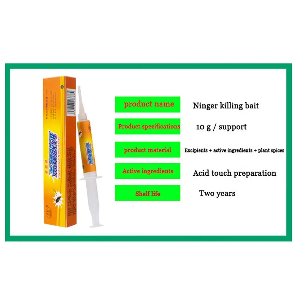 Информация:1. Название продукта: гелевая приманка для тараканов2. Характеристики продукта: 10 г/шт.3. Материал продукта; Аксессуары + активные ингредиенты + специи растений4. Активный ингредиент: подготовка борной кислоты (комплексный ингредиент 10%)5. Срок годности: два годаСписок:1 * гелевая приманка для тараканов