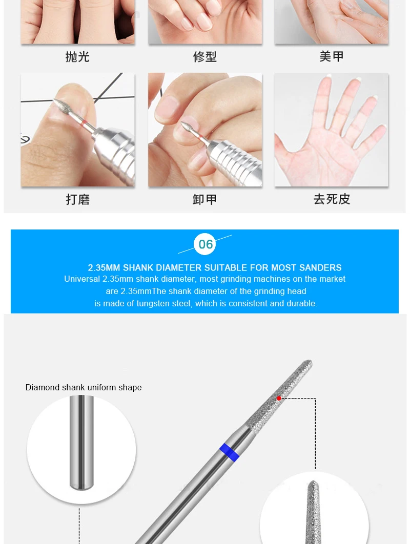 Clou Beaute фреза для маникюра, сверло для ногтей, 10 шт., маникюрные фрезы и шлифовальная щетка для удаления пыли, инструменты для ногтей, аксессуары