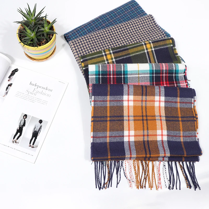 Зимний шарф в клетку, Женский тёплый платок, Женские однотонные шарфы, модные повседневные шарфы, кашемировые шарфы