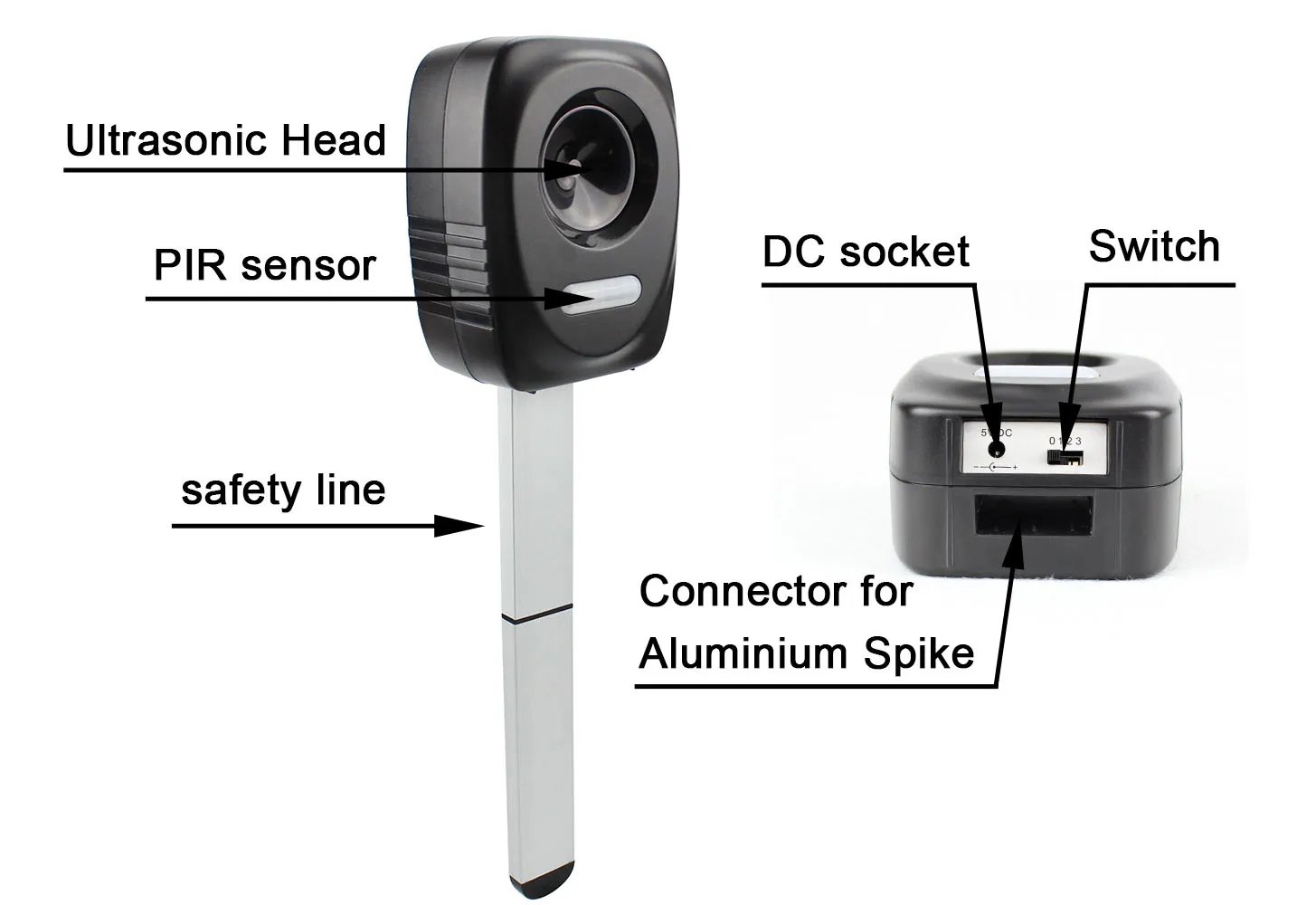 2. С PIR животные избегают площади из-за его неприятного ультразвукового звука. Звук включается, когда животное входит в диапазон.