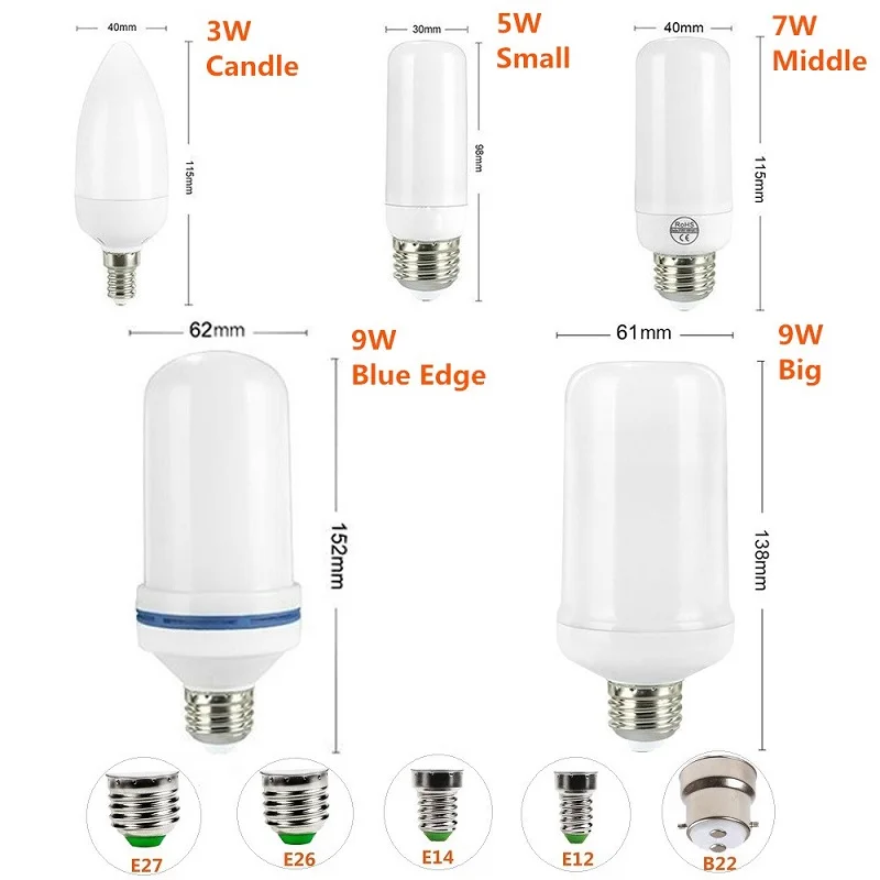 Светодиодная лампочка-кукуруза с эффектом динамического пламени, E27, E26, E14, E12, 3 Вт, 5 Вт, 7 Вт, 9 Вт, 2020
