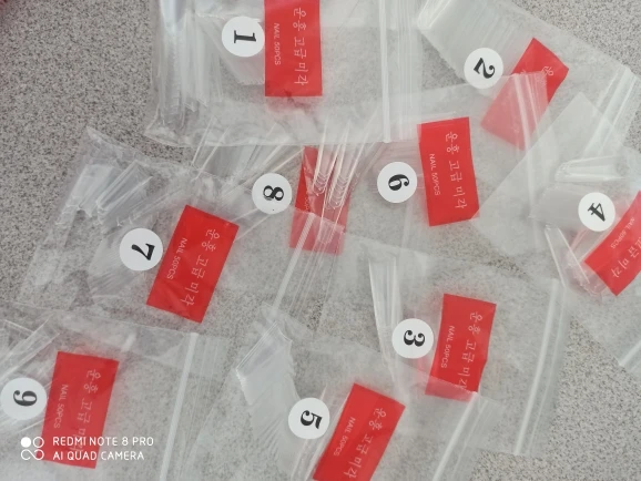 Доставка в течение заявленного времени, капсулы сортируются по размеру в небольших отдельных мешках, все спечены в большом мешке. Идеальная форма, они достаточно гибкие, чтобы следить за естественной бомбой горла, будучи твердыми. Капсулы должны быть покрыты гелем, потому что позволяют увеличить длину ногтя