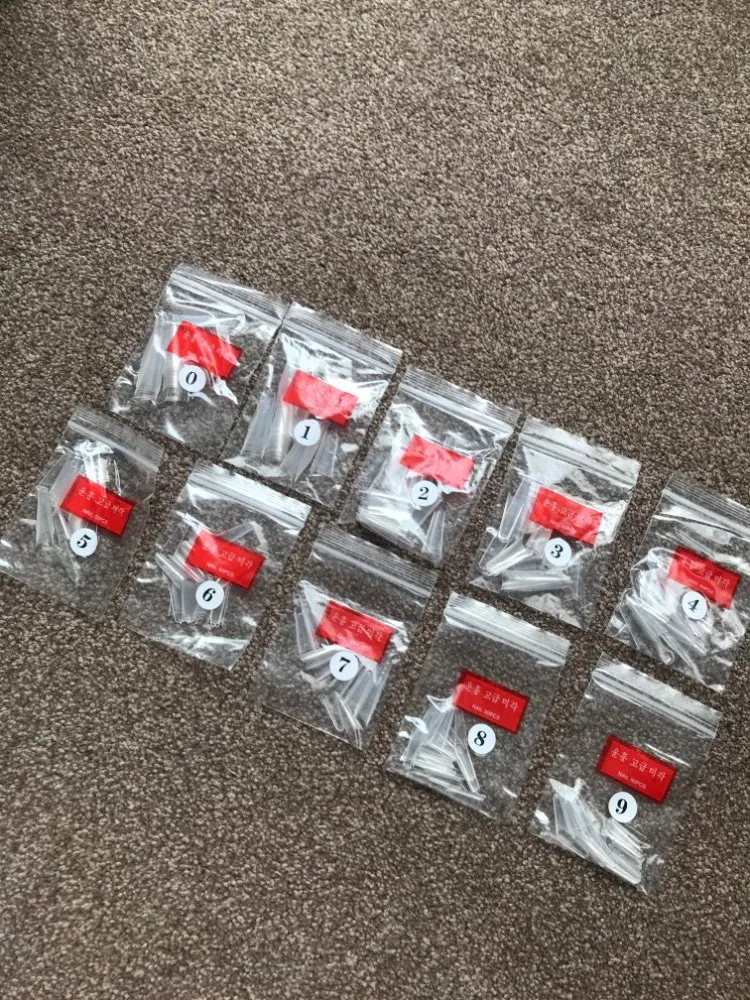 Дошел быстро. Маленькие Пакеты каждого размера для ногтей были помещены в больший пакет, поэтому я оценил это. Советы хорошего качества. Я буду наслаждаться их использованием