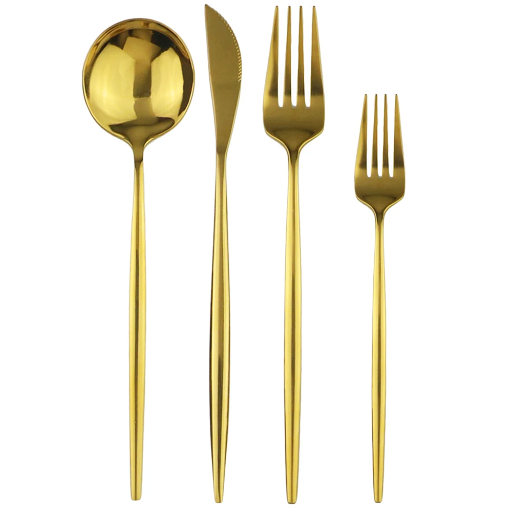Набор столовых приборов JANKNG, 4 шт., золотистые столовые приборы, вилка для десерта, нержавеющая сталь 304, зеркальные столовые приборы, набор серебряных изделий