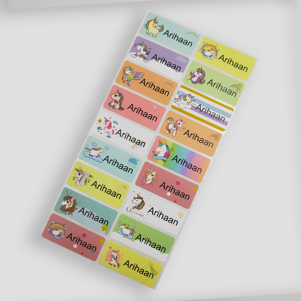 Водонепроницаемые наклейки с именем в виде единорога, 3 размера, Детские канцелярские принадлежности, персонализированные наклейки для канцелярских принадлежностей